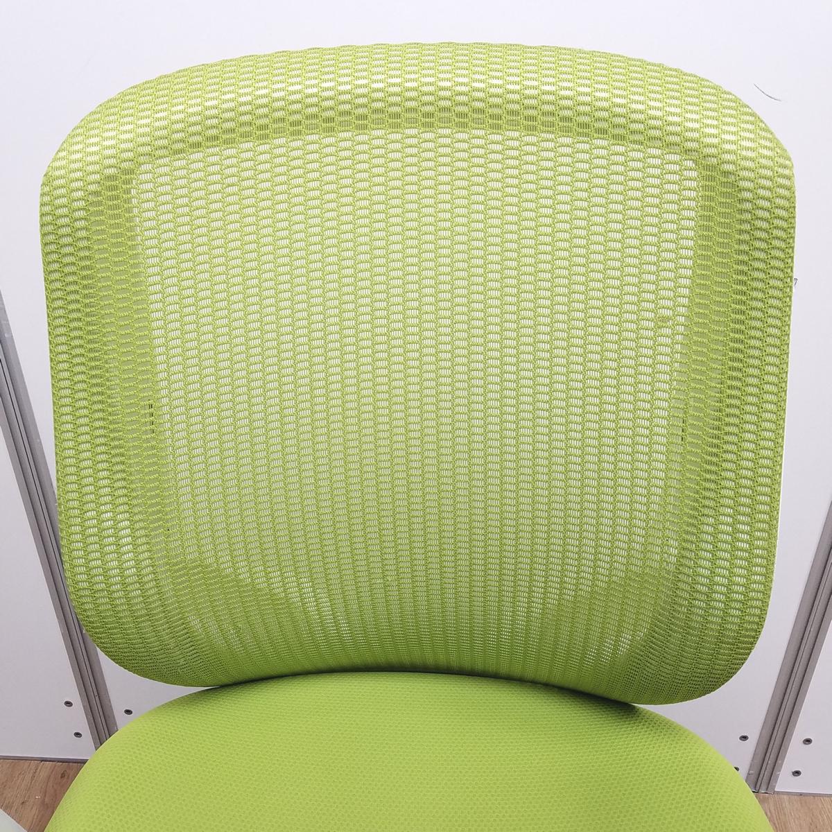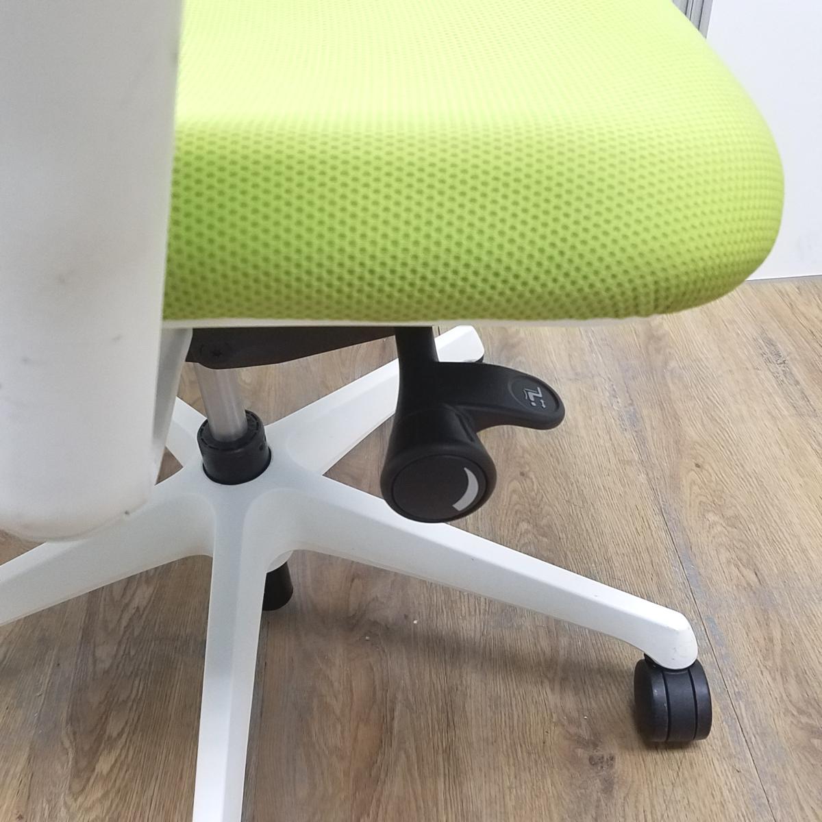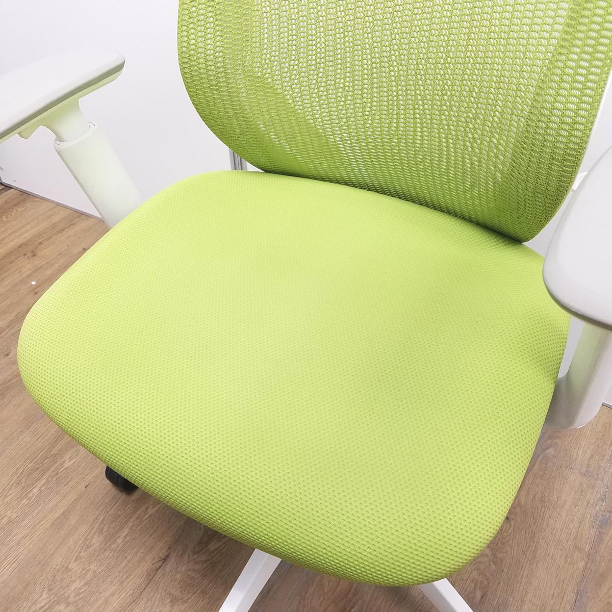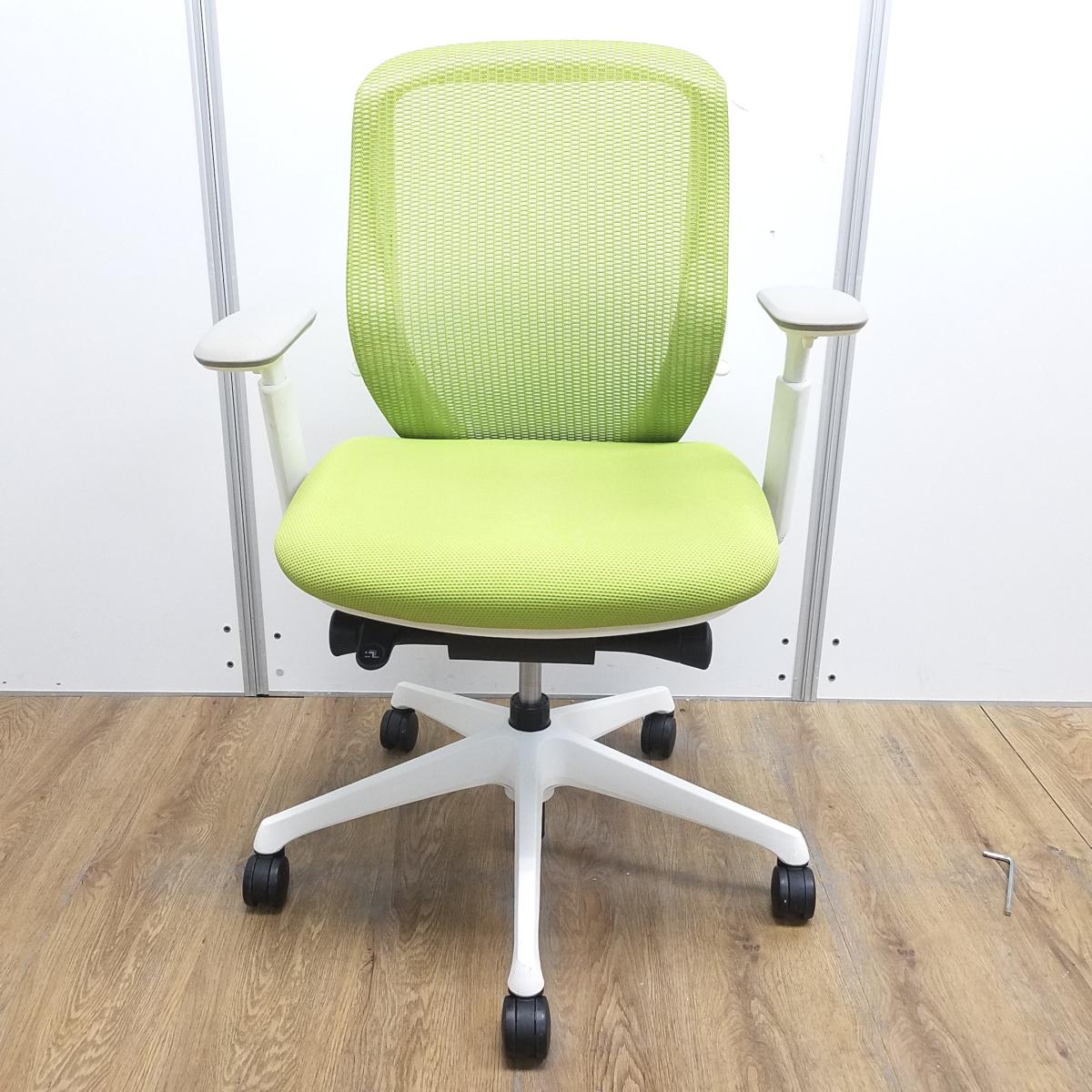 【T9】【商品入替のため、残り2脚限り】オカムラ製 シルフィシリーズ ライムグリーン ホワイトフレーム アジャストアーム※可動肘 ローバック 背面メッシュ 前傾チルト 自宅用 三次元曲面が快適にフィット! 機能付の大人気メッシュチェア! 肘付きローバックチェア!!サーキュラーバリューCO2削減量の算出について