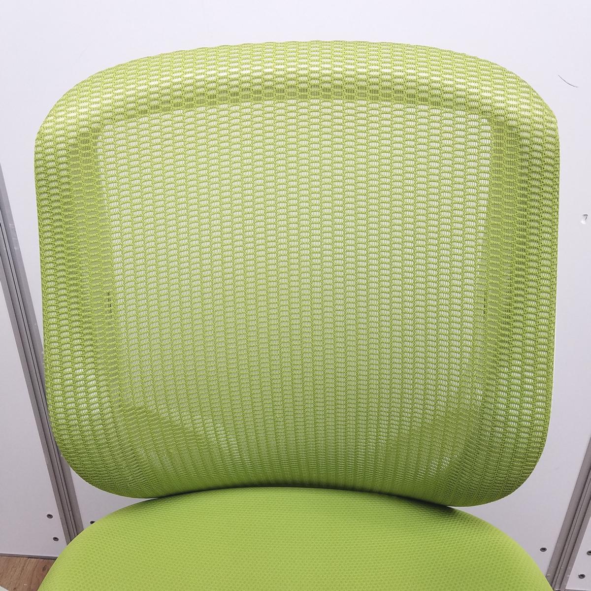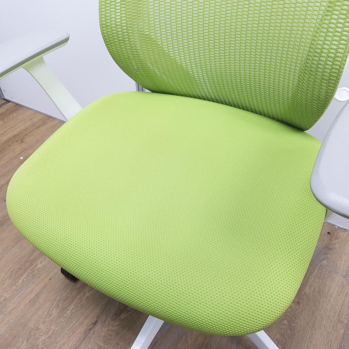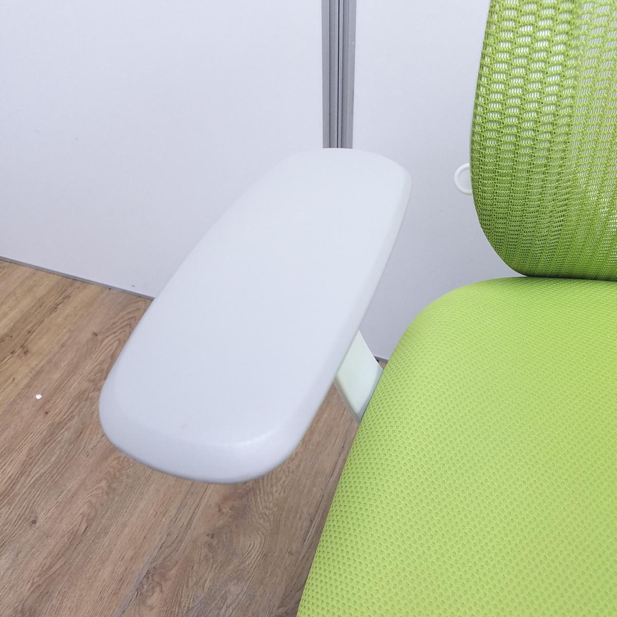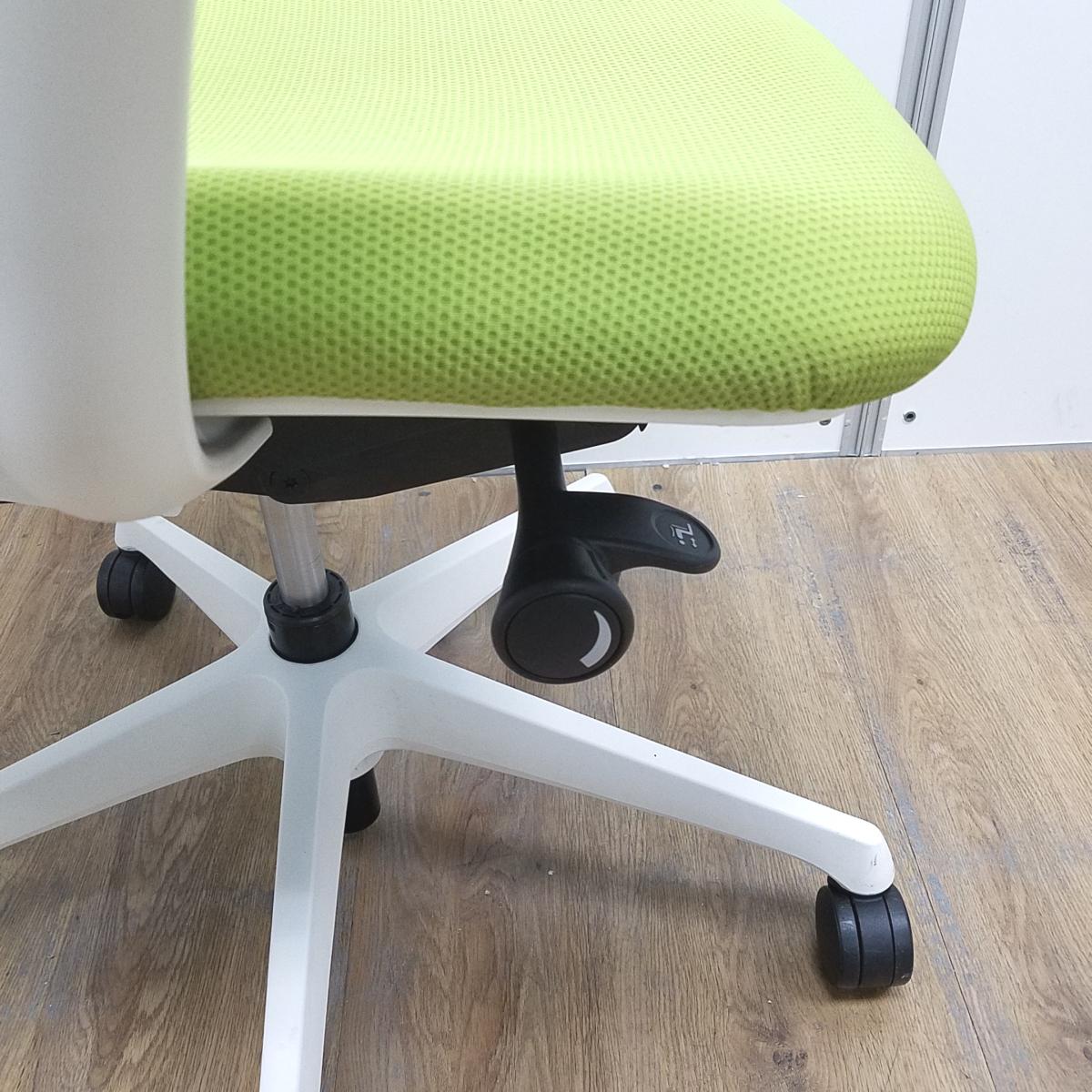【商品入替のため、残り1脚限り】オカムラ製 シルフィシリーズ ライムグリーン ホワイトフレーム デザインアーム※固定肘 コートハンガー付き ローバック 背面メッシュ 前傾チルト 自宅用 三次元曲面が快適にフィット! 機能付の大人気メッシュチェア! 肘付きローバックチェア!!サーキュラーバリューCO2削減量の算出について