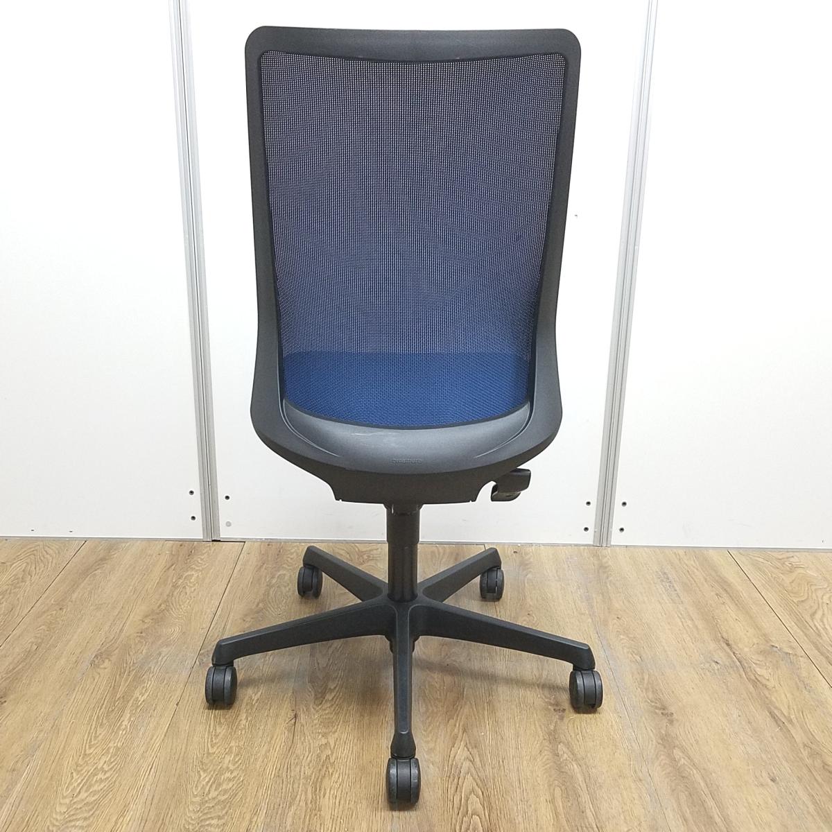 【T8】【商品入替のため、残り1脚限り】オカムラ製 フルーエントシリーズ ブルー ブラックフレーム メッシュ ハイバック リクライニング機構 肘無しハイバックチェア!!- 京都東寺店