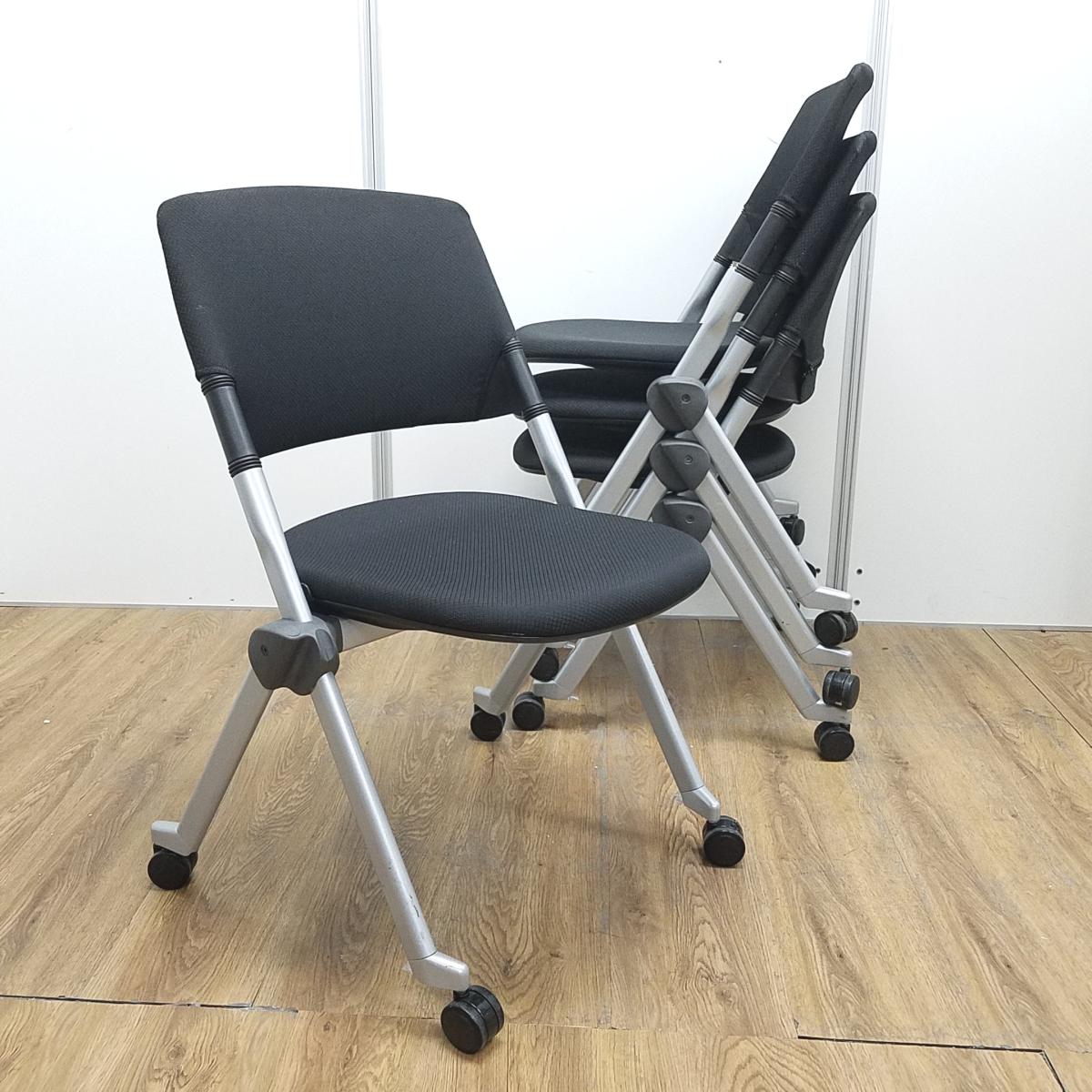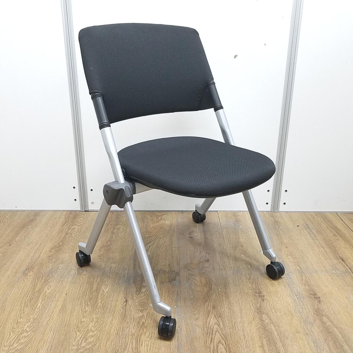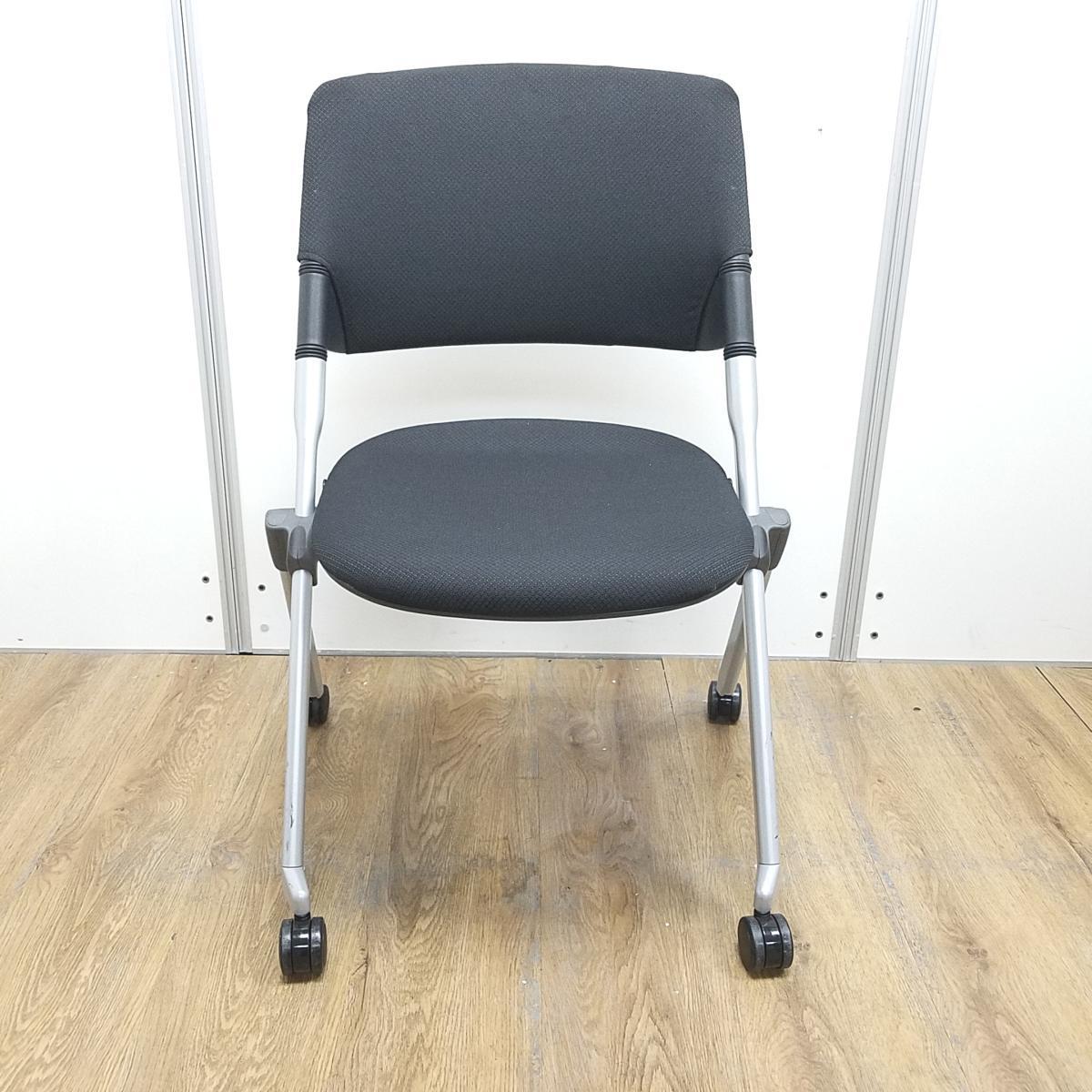 【4脚セット商品!!】オカムラ製 リータシリーズ ブラック 会議用 キャスター付 会議室用におすすめ! 水平にも垂直にもスタッキング可能! ミーティングチェア ネスティングチェア!!- 京都東寺店