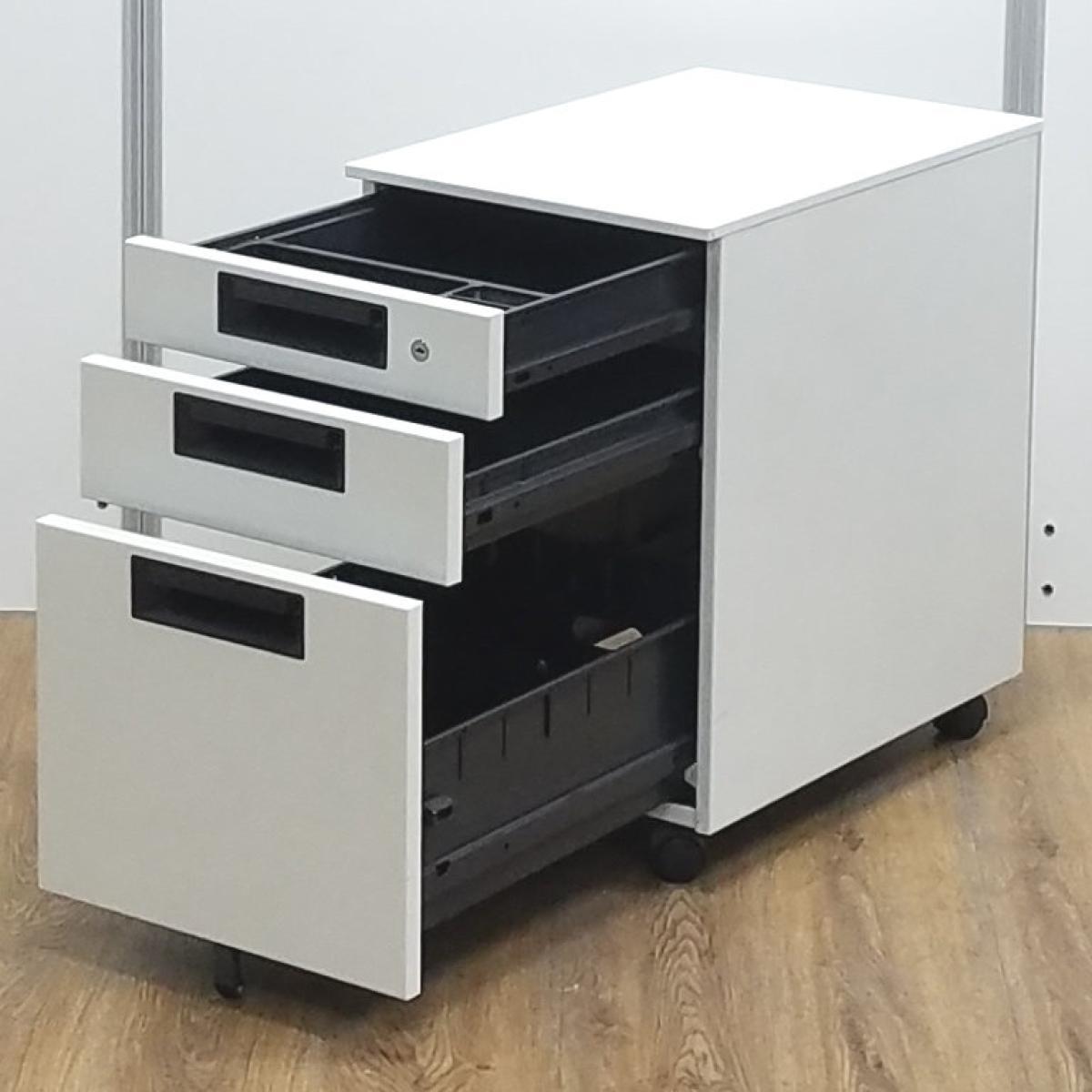 【T9】【商品入替のため、残り4台限り】プラス製 フラットラインシリーズ ホワイト H600サイズ シリンダー錠 書類整理に便利! 平机の相棒! デスクインワゴン 3段ワゴン!!- 京都東寺店