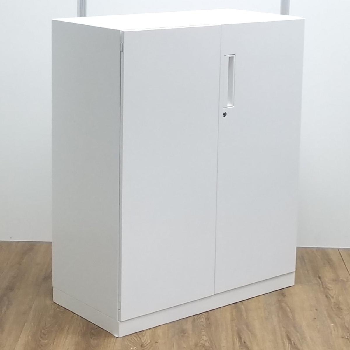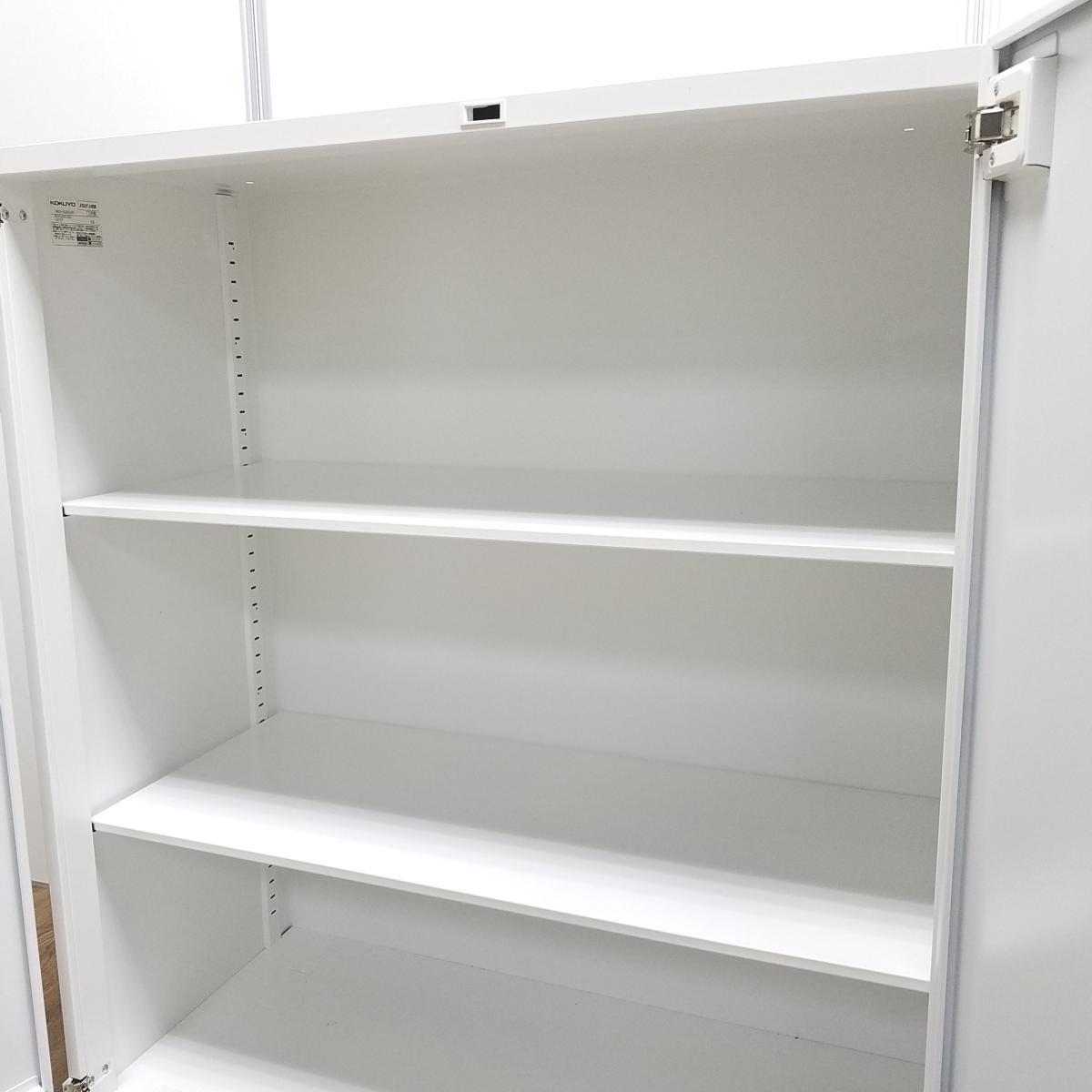【収納物がひとめで分かる両開き戸タイプ!】■コクヨ(KOKUYO)製 エディア(EDIA)シリーズ 両開き書庫 ローキャビネット H1130㎜ ■天板・ベース付 ■ホワイト ■シリンダー錠【IB】