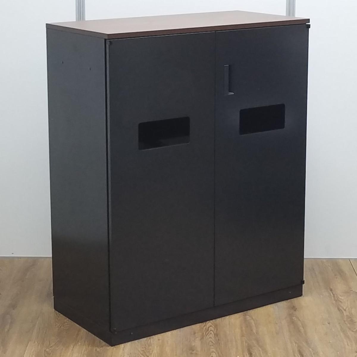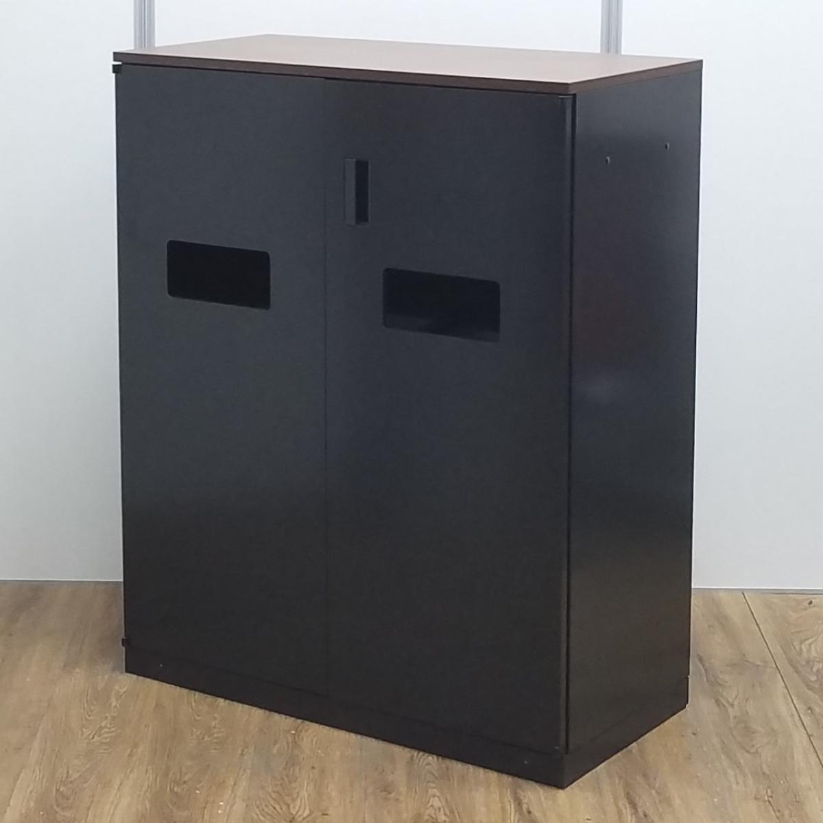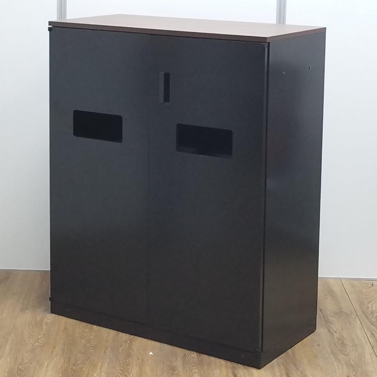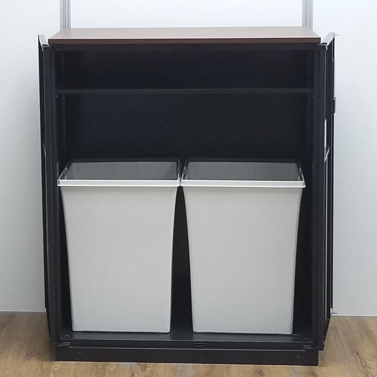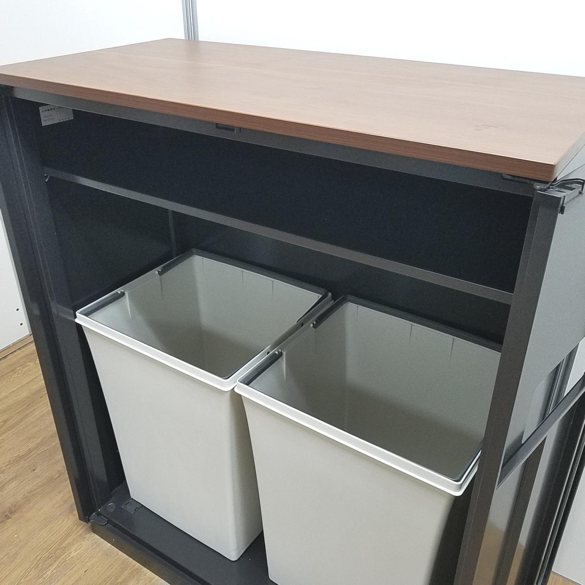 ★【T10】【商品入替のため、残り1台限り】ウチダ製 HS(ハイパーストレージ)シリーズ ブラック 木目ブラウン天板 ぱっと見ではゴミ箱には見えないデザイン! あると便利な逸品! リフレッシュスペースに設置もオススメ! 両開きトラッシュユニット(分別ダストボックス)!!- 京都東寺店