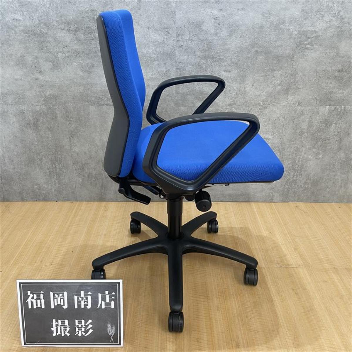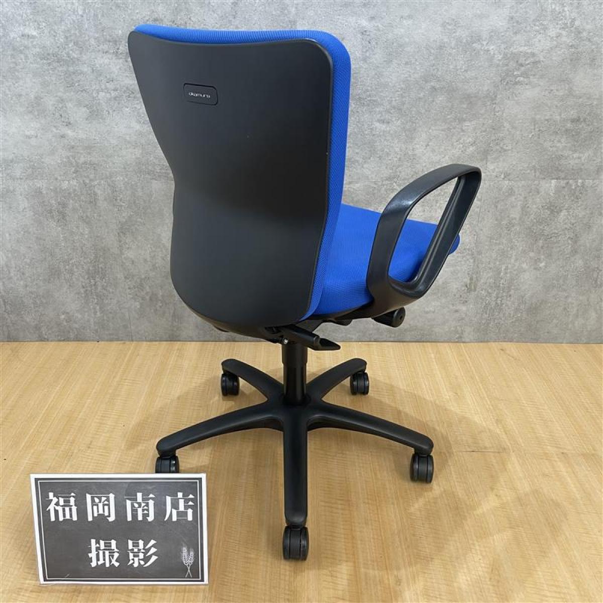 定番のオカムラ製のチェアが入荷!厚めのクッションで座り心地抜群! ■オカムラ/カロッツァ/ブルー ブラックシェル リング肘