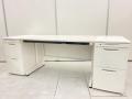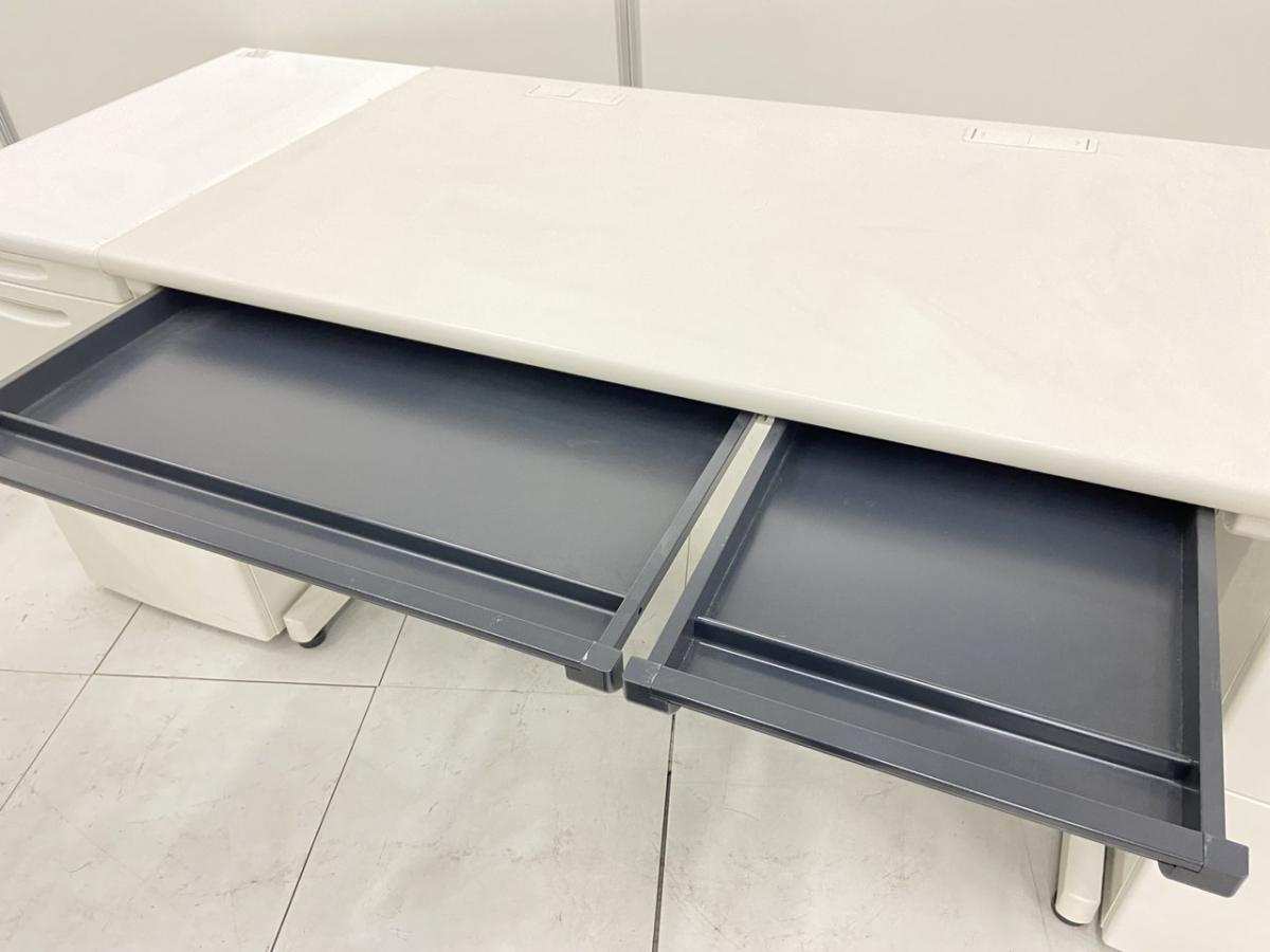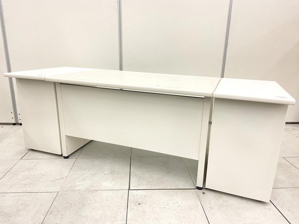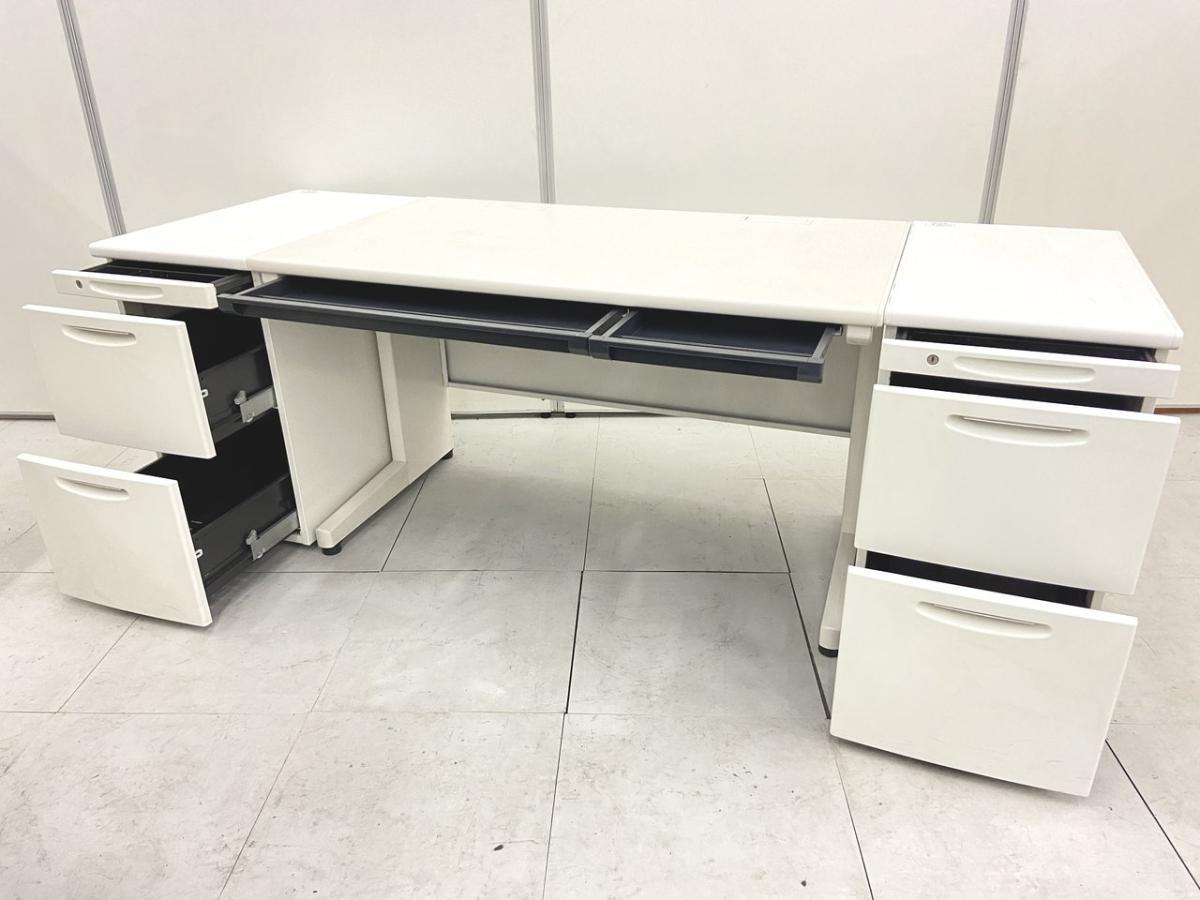 【定番サイズの幅1400㎜! オーソドックスな片袖机+脇机が入荷!】■プラス(PLUS)製 フラットライン(furatto_rain) 片袖机+脇机 引き出し付き 幅1400mm ■ホワイト【入替セールにつき30%OFF!】【状態良好品!】- つくば店