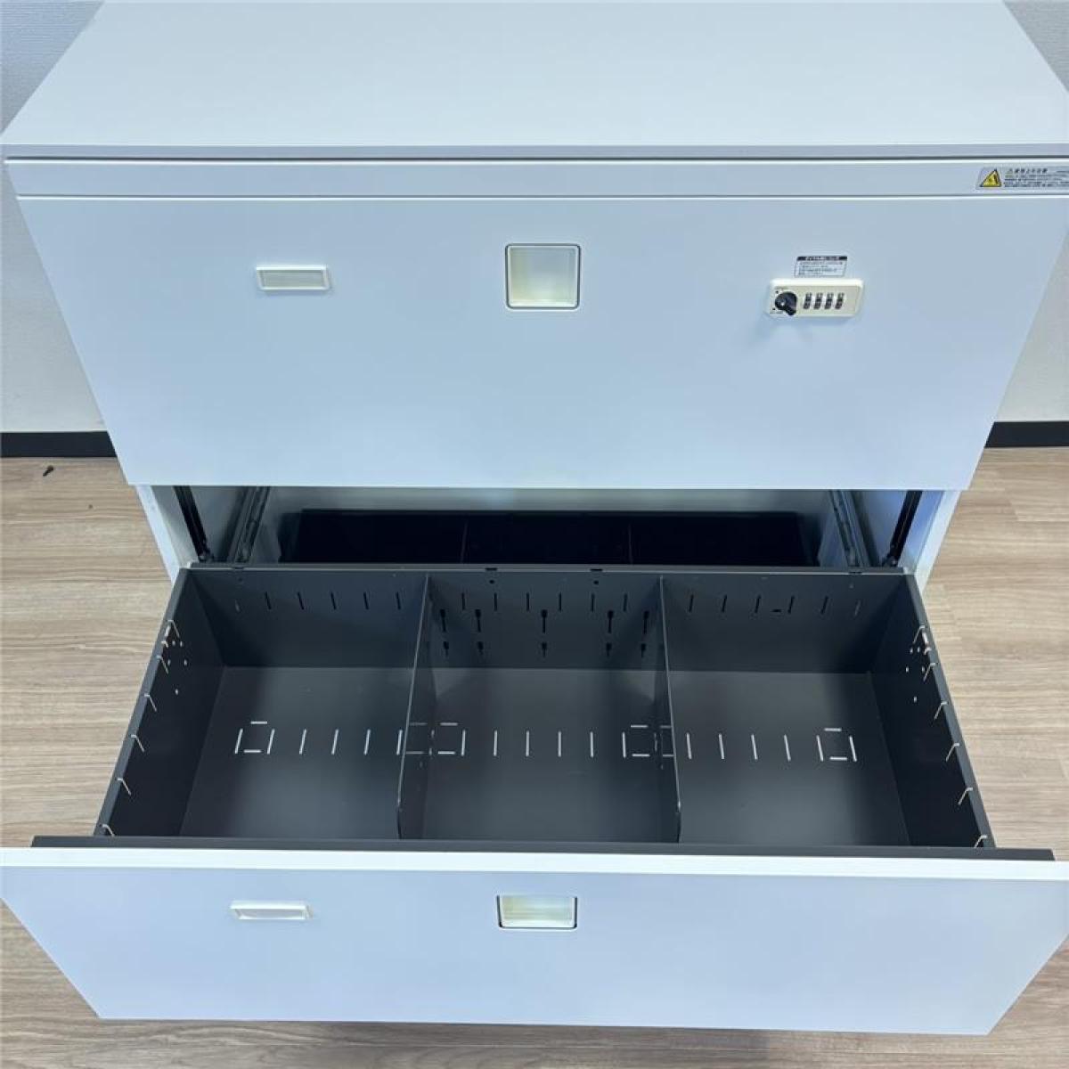 【ダイヤル錠】【高品質で使いやすい人気の3段引き出し式書庫!】■オカムラ(okamura)製 レクトラインシリーズ 3段ラテラル書庫 ローキャビネット ■本体:ホワイト 天板:ホワイト ■ダイヤル解除キー作製不可【2507】弊社使用欄【A01028182】- 埼玉本店
