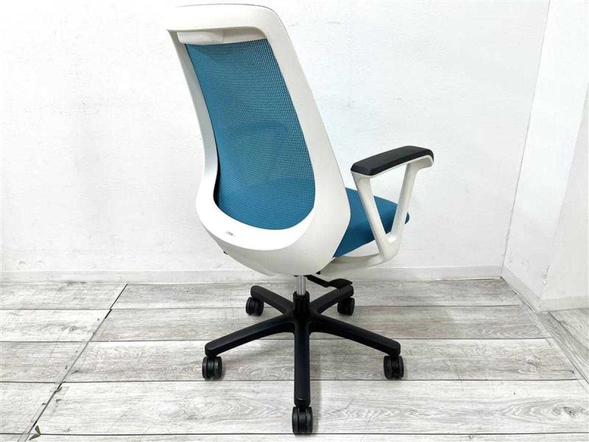 【在庫セール品・1脚限定】【T11】■イトーキ(ITOKI)製 ノナ(nona)チェア 肘付ハイバックチェア ■背面メッシュ ■可動肘 ■ブルーグリーン ×ホワイトシェル【理想的な作業姿勢をキープ!コンパクトで使い勝手抜群!】