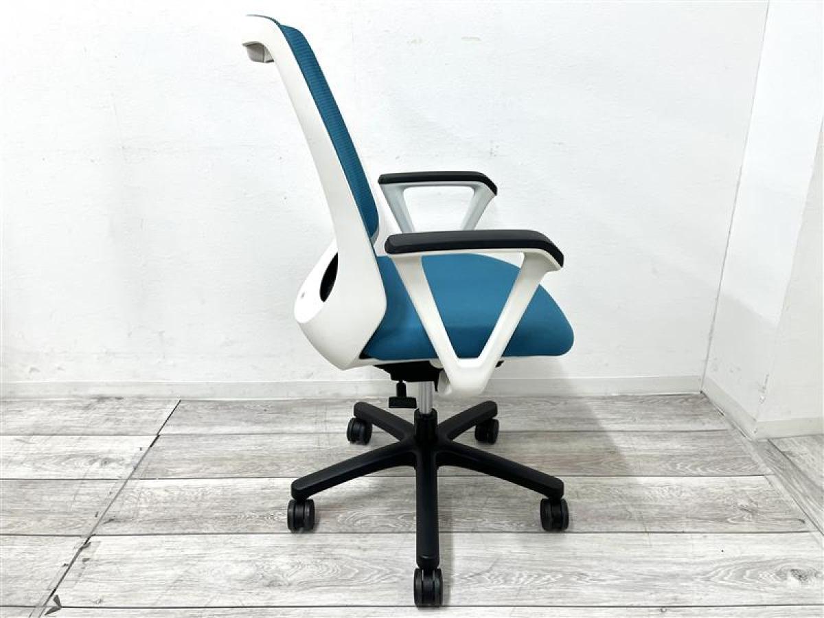 【定価約7万円】【座りやすくてコンパクト!肩回りが動かしやすい背面メッシュの人気チェア!】■イトーキ(ITOKI) ノナ(nona)チェア ハイバック 肘付き ■サークル肘 ■背面メッシュ ■ストロングブルー × ホワイトフレーム- 仙台店