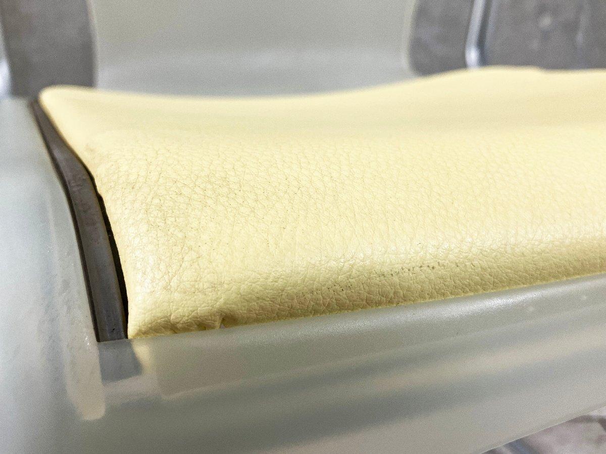 - かなり強い濃い黄ばみ・変色が商品全体にある。(例、座面・背もたれ、脚部等にある。)