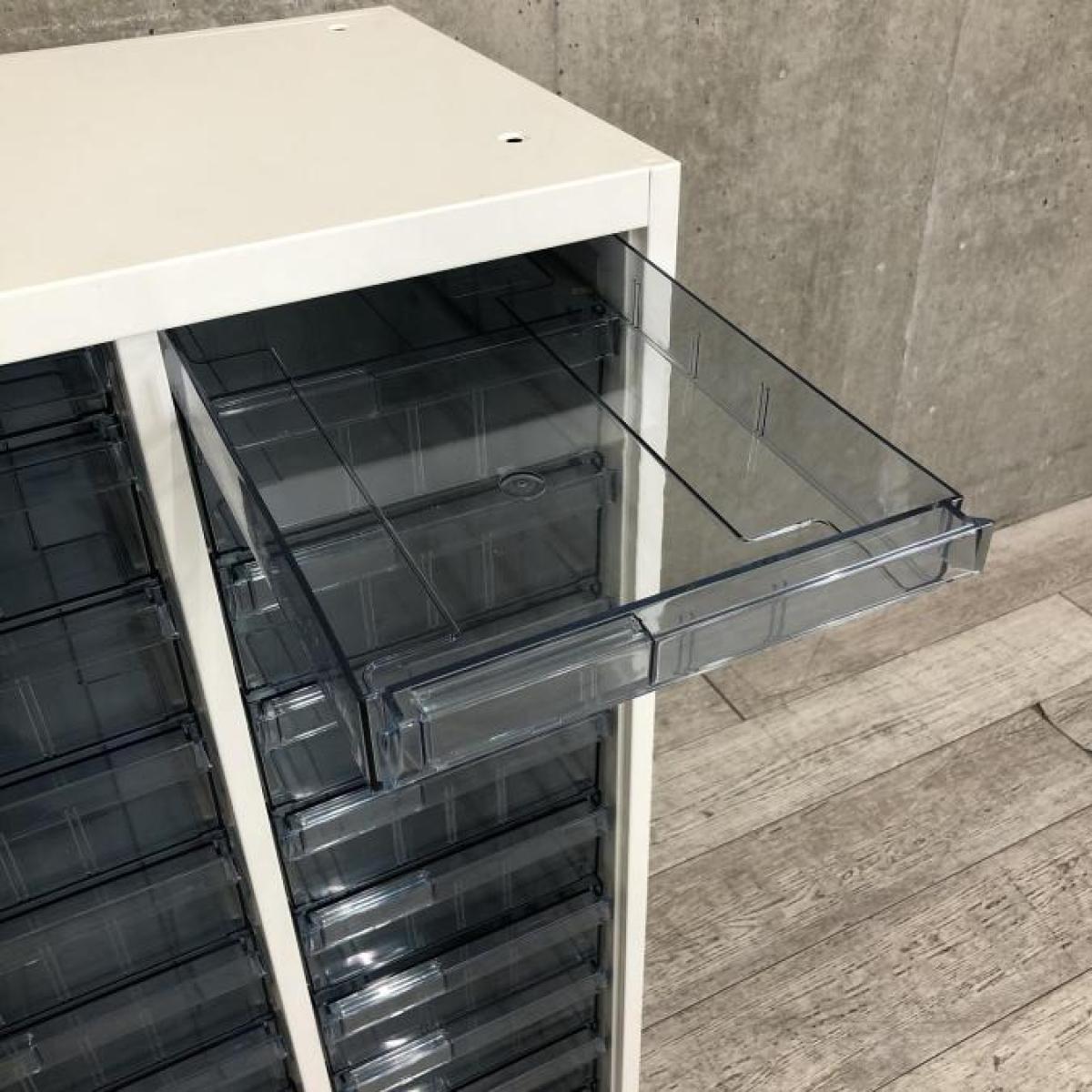 ★オカムラ製 レクトライ ホワイト 3列x16段 浅型x11段/深型x5段混在 W900xD450xH1150サイズ 天板付 クリスタルトレーキャビネット クリスタルトレイ!!