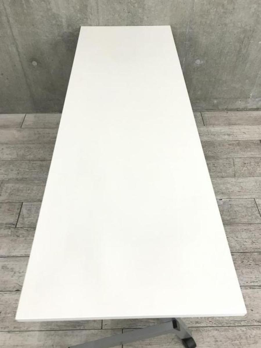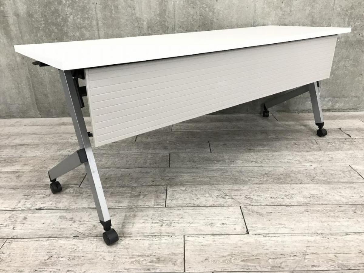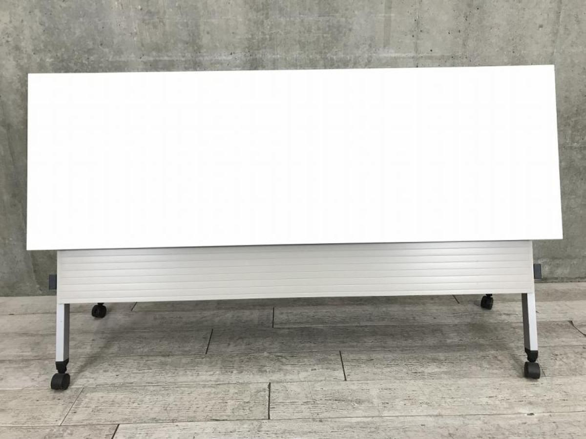 使い勝手抜群!天板を跳ね上げて収納ができるスタックテーブルが入荷!幕板付きで安心! ◆内田洋行/プラッテ(Platte)/ホワイト 横幅1500mm(奥行450mm)フラップテーブル