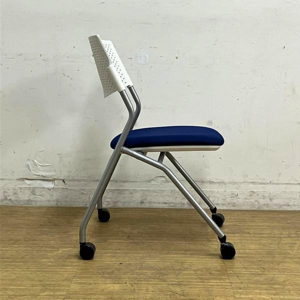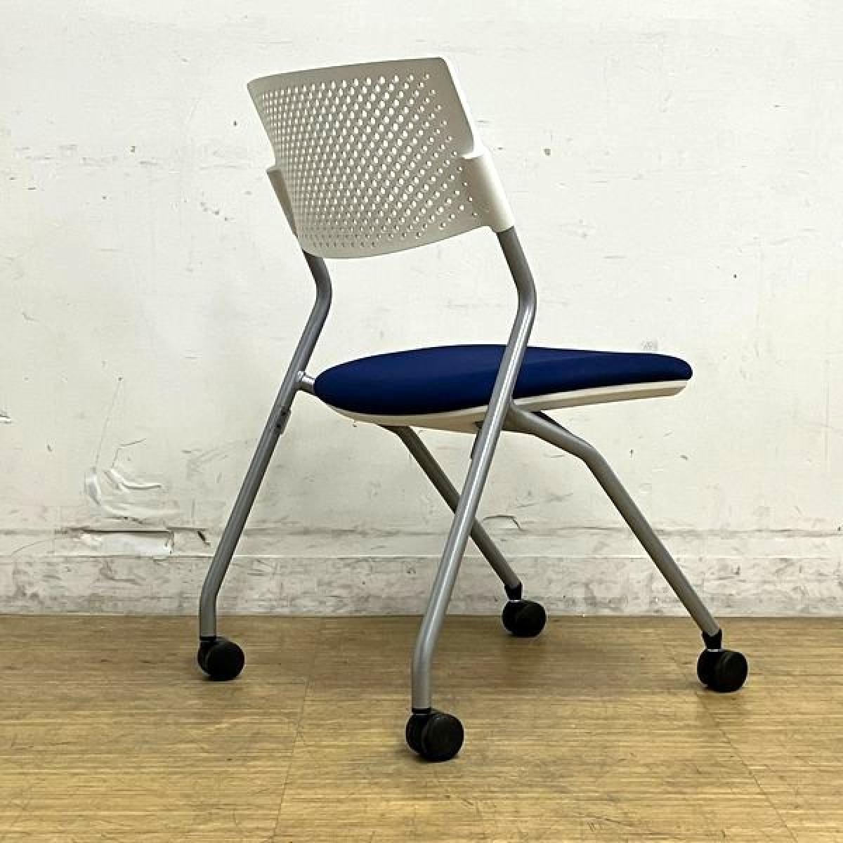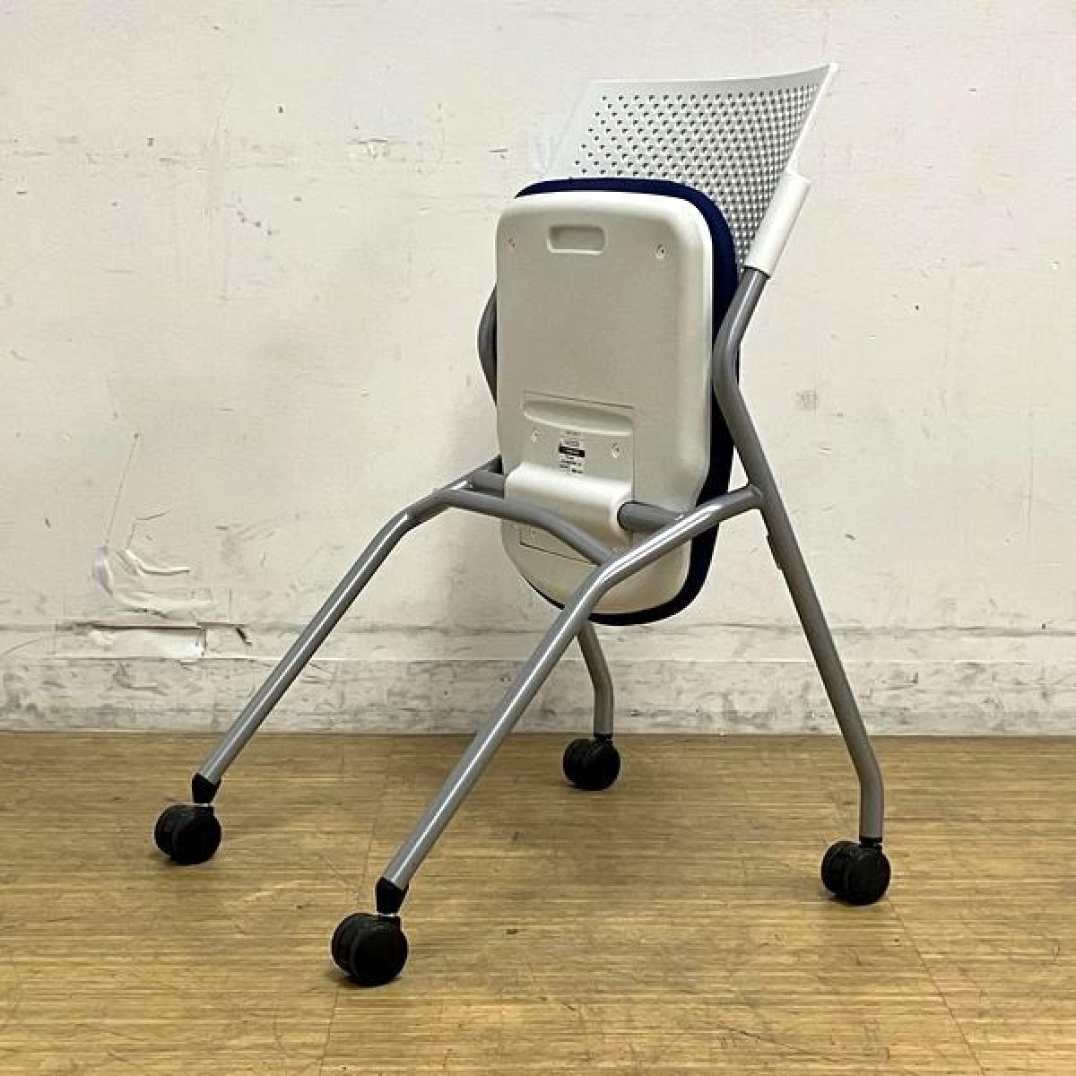 【6脚限定】【在庫入替品】【スタイリッシュなネスティングチェア!シンプルデザインで様々なミーティングシーンにぴったりフィット!】■ウチダ(UCHIDA)製 FM265 ネスティングチェア ■座面ブルー×ホワイト背面 ■キャスター付 ■背面樹脂メッシュ オフィスバスターズ 梅田本店【T9】