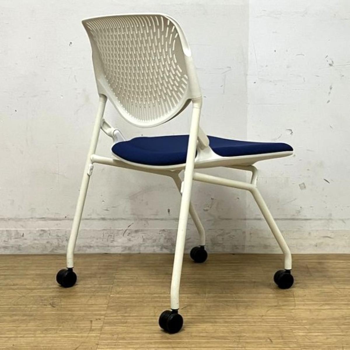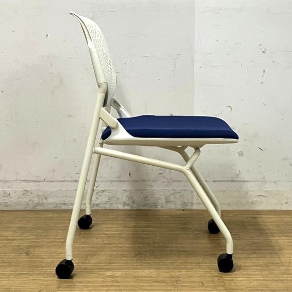 【在庫入替セール】オカムラ ルナ ネスティングチェア 背パッドなし ミディアムブルー×ホワイトフレーム 会議用・打ち合わせ用に最適のチェア 【愛知・名古屋・豊田・静岡・浜松】- 名古屋千種店