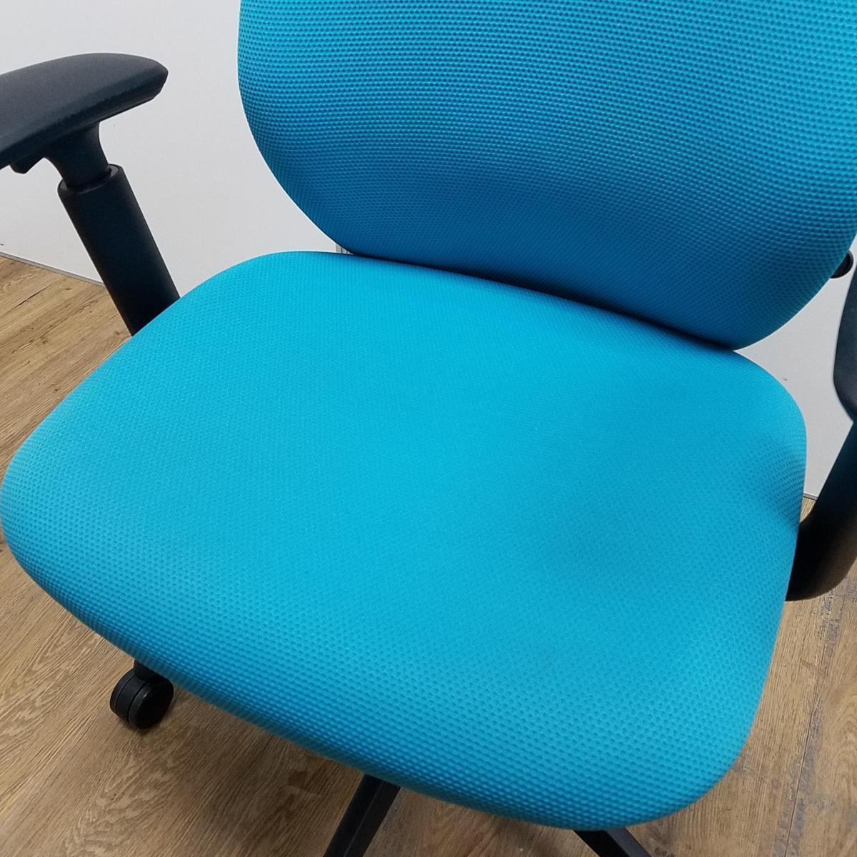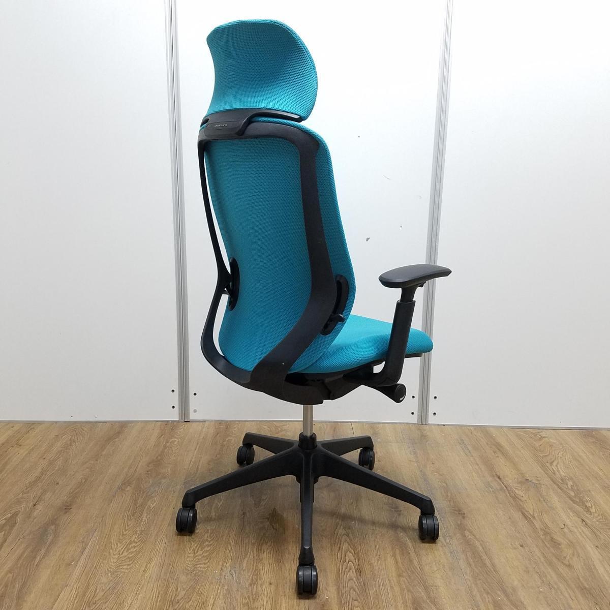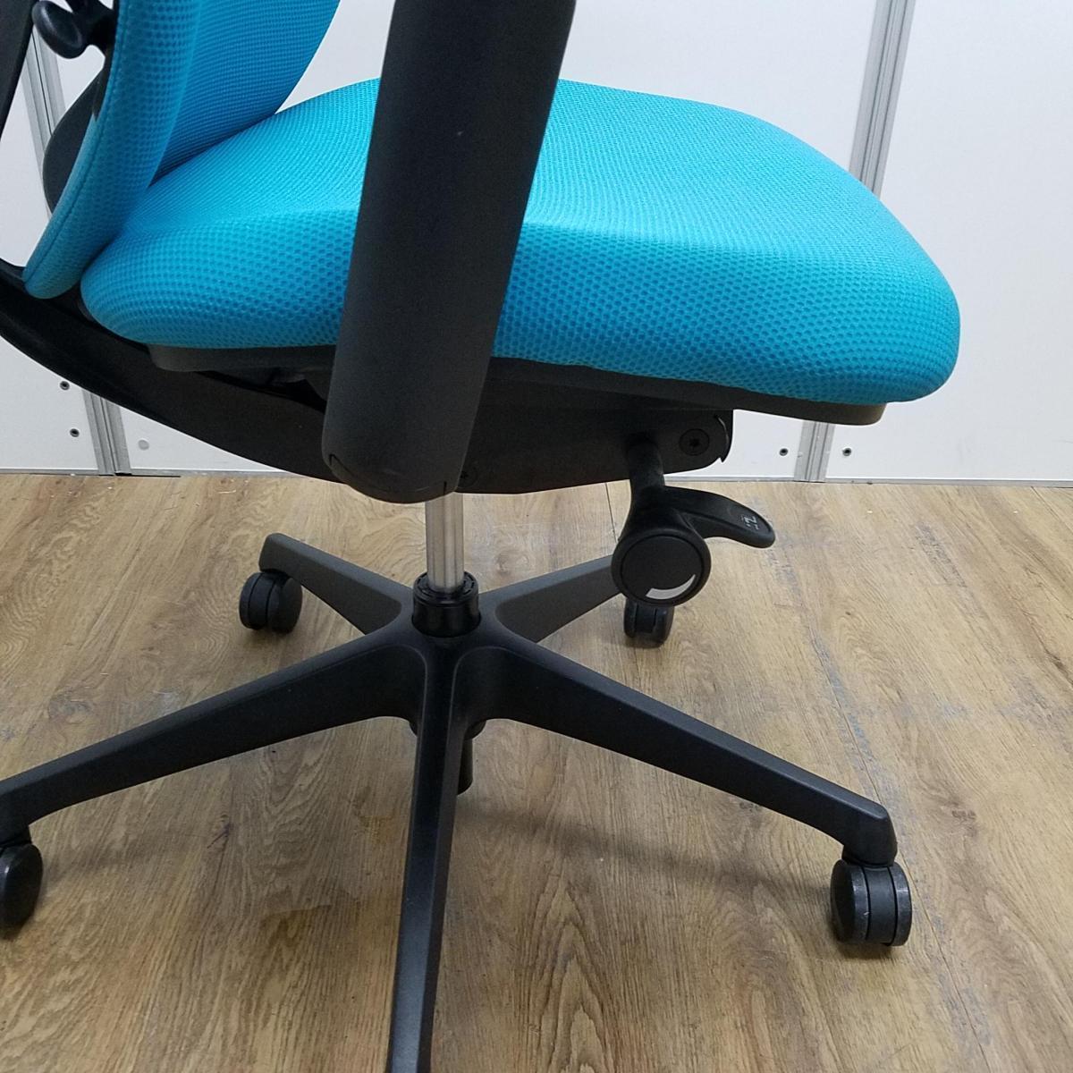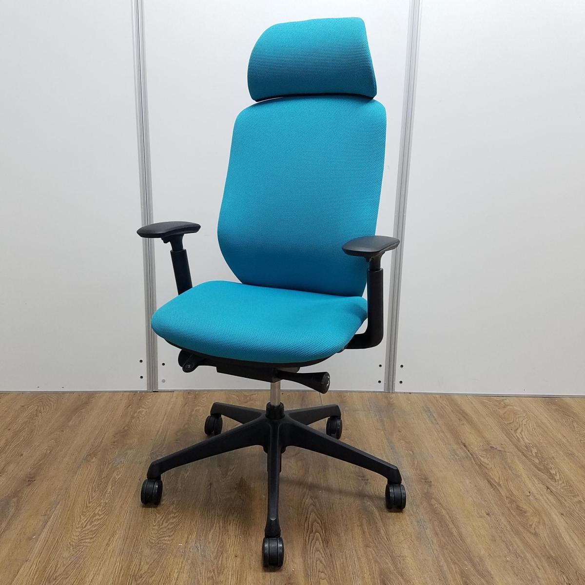 【T8】【商品入替のため、残り2脚限り】オカムラ製 シルフィーシリーズ ブルーグリーン ヘッドレスト アジャスタブル※可動肘 樹脂脚 肘付きハイバックチチェア!!- 京都東寺店