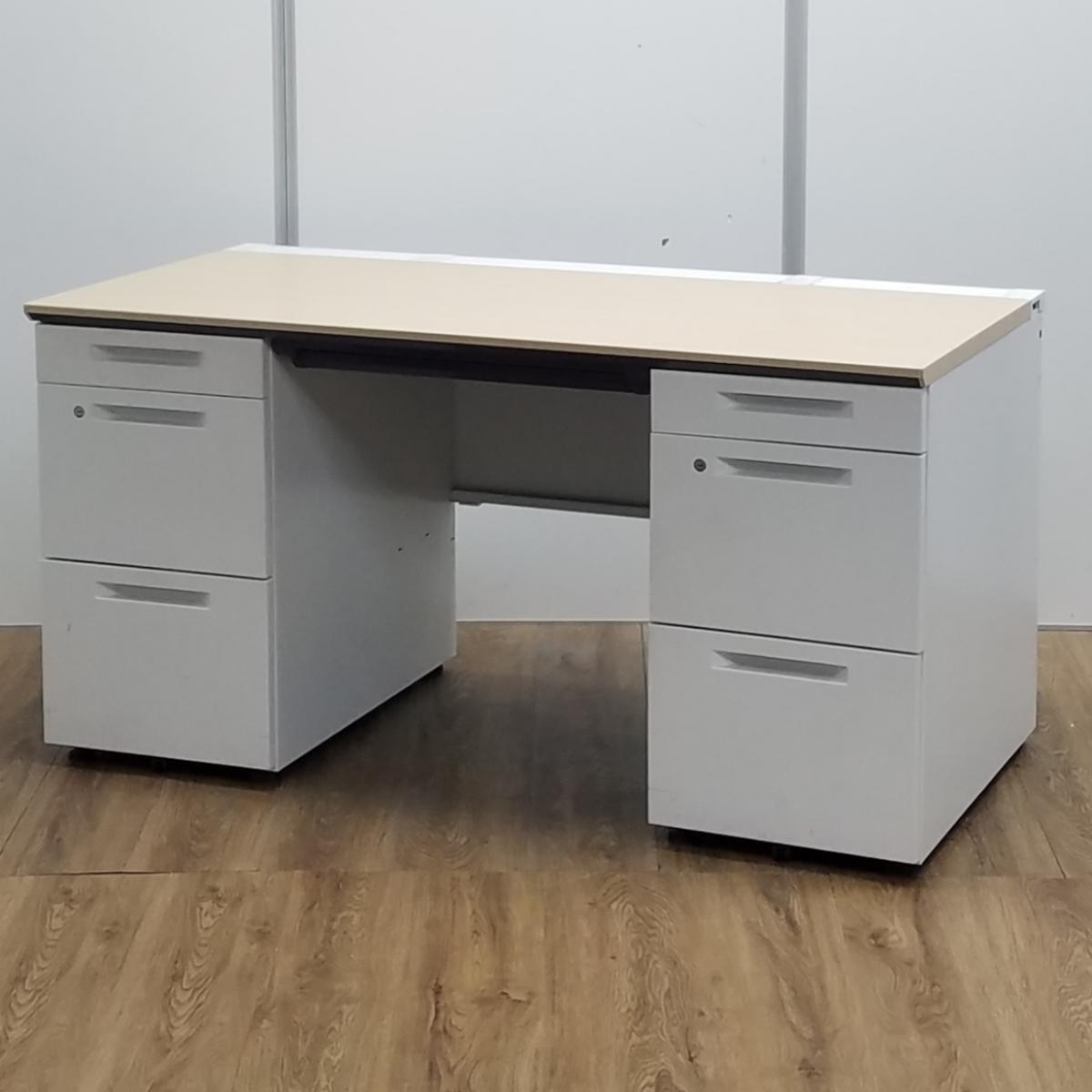 【K8】【商品入替のため、残り1台限り】コクヨ製 iSシリーズ ナチュラル天板 W1400サイズ 上長席におすすめ! 収納量抜群の両袖机! ワークスペース広々! W1400サイズのナチュラル天板デスク W1400両袖机!!- 京都東寺店
