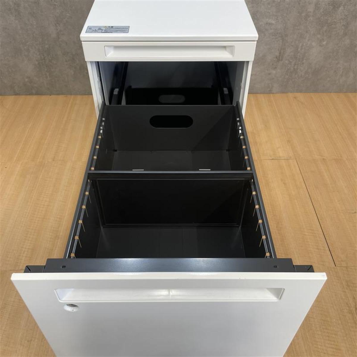 【フリアドデスクや平机の収納力アップに最適!】■オカムラ(okamura)製 アドバンス(ADVANCE)シリーズ 3段ワゴン フリアド用 W390×D575×H650㎜ 引き出し(薄い) ■ホワイト ■シリンダー錠 外部倉庫在庫