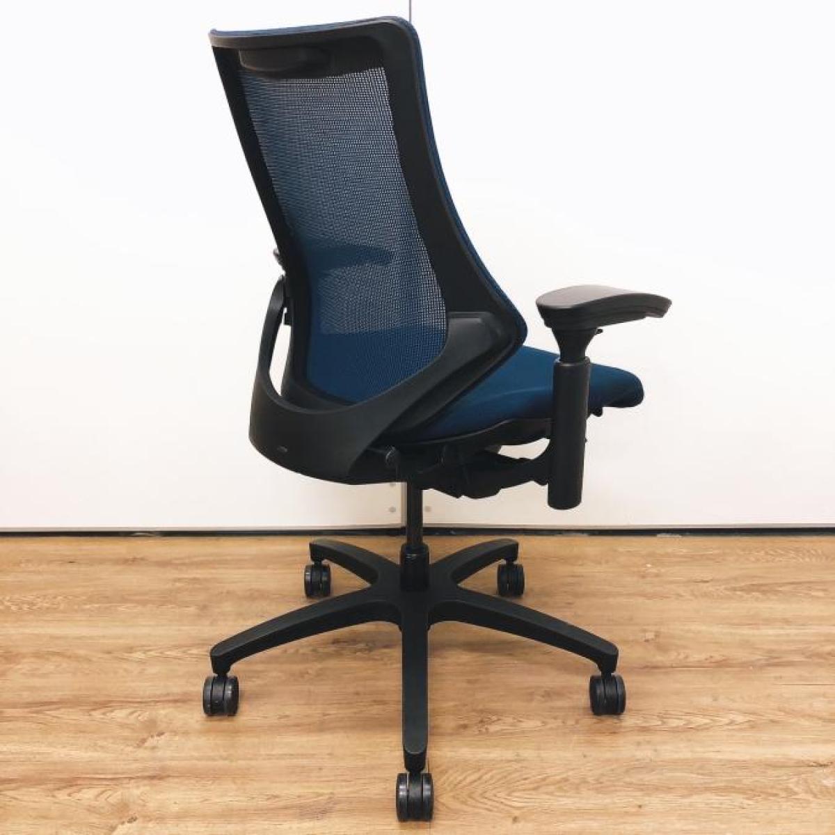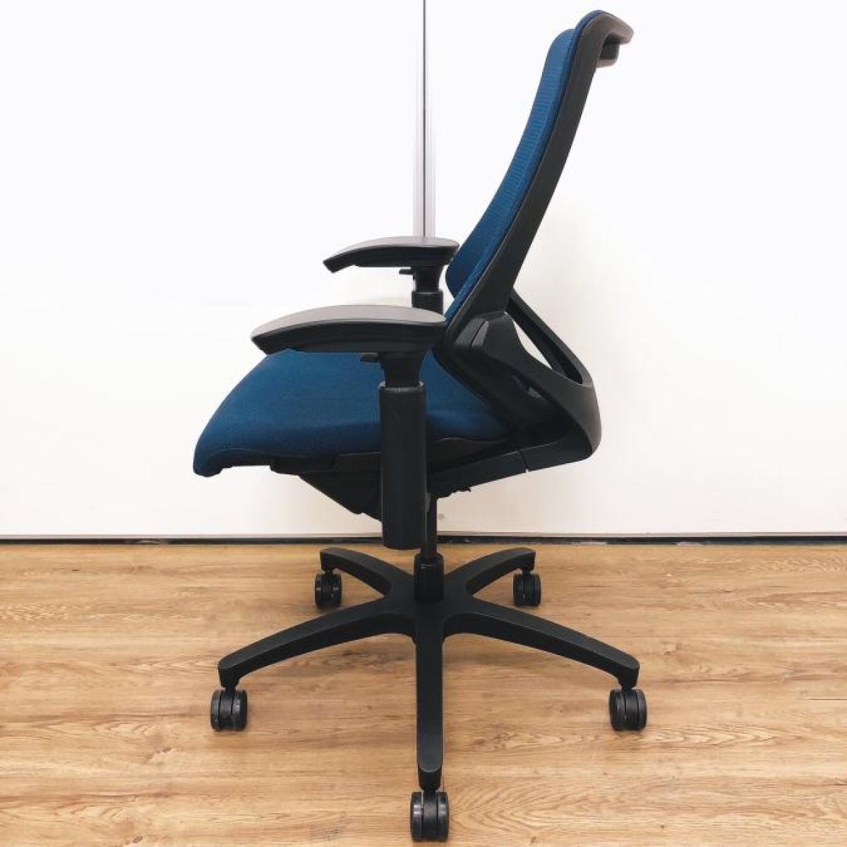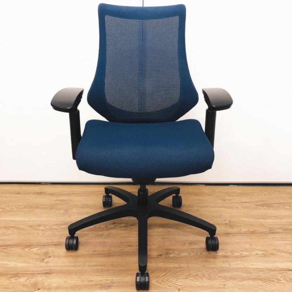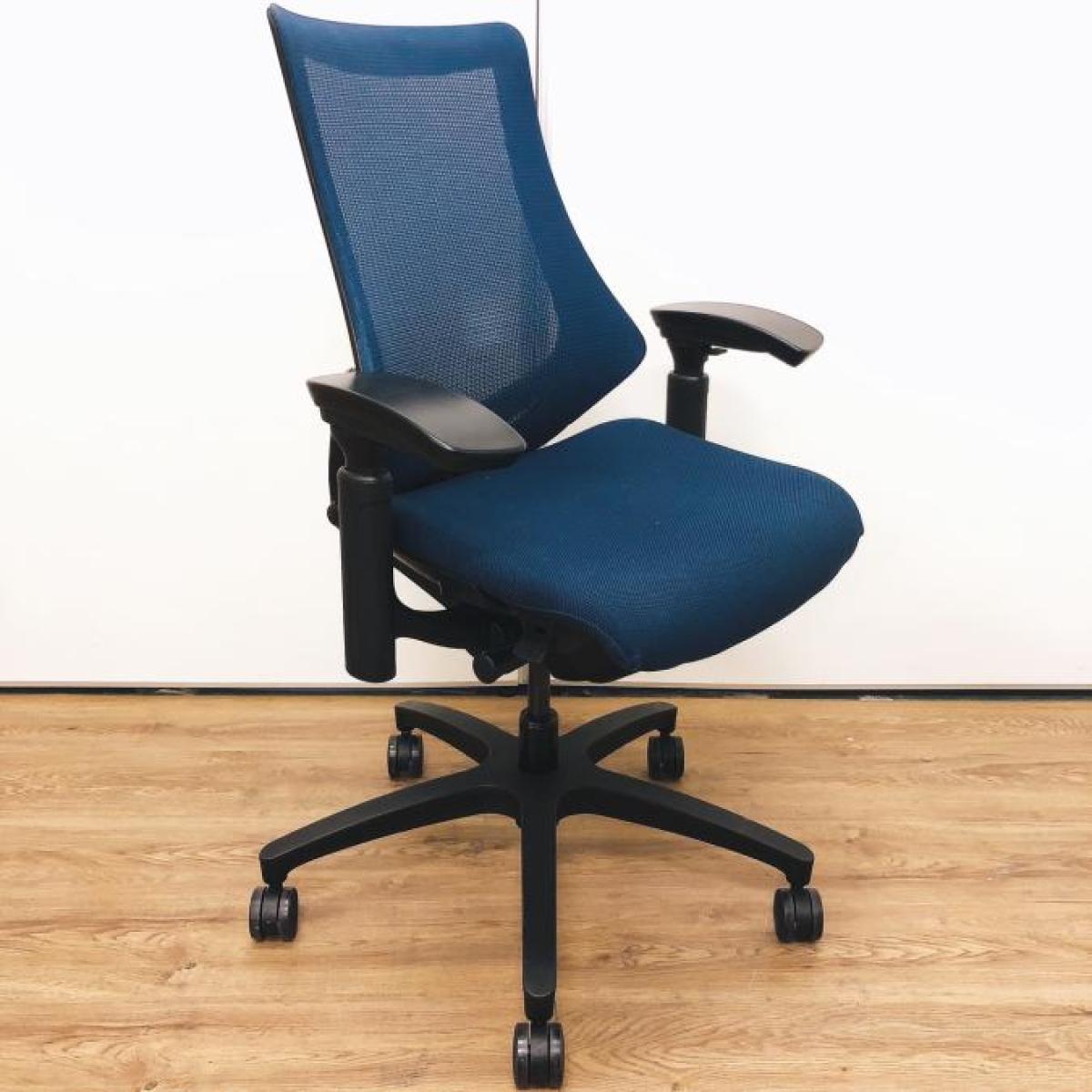 【最先端のデザインに快適な座り心地!】■イトーキ製 エフチェア 可動肘付 ネイビーブルー ■三次元フォルムが腰にフィット!【在庫入替セール品(本在庫限定価格)】