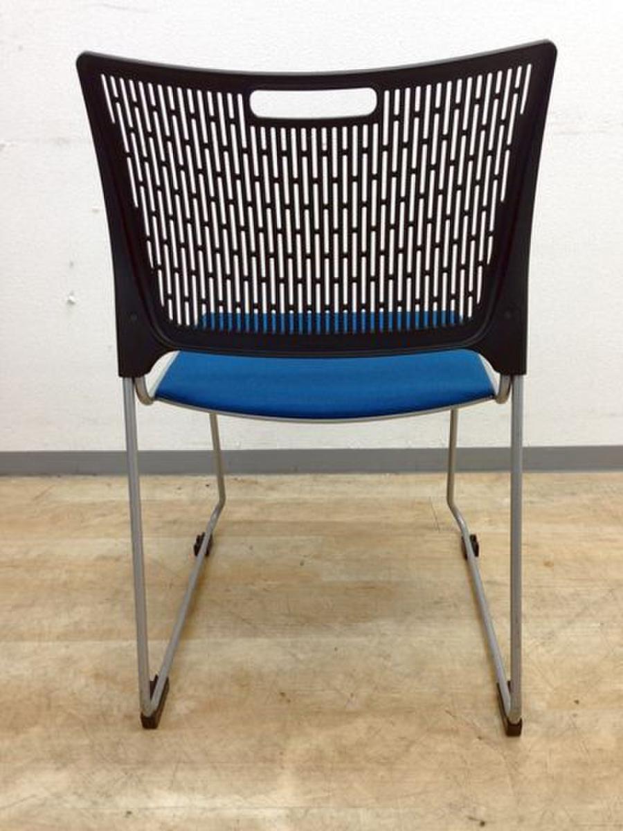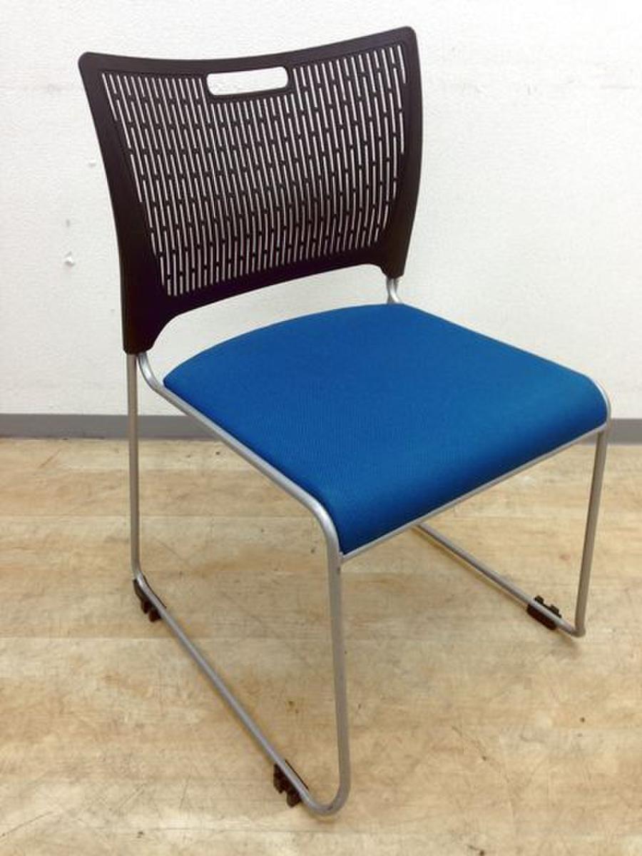 【在庫入替セール品!】コンパクトで人気なミーティングチェア!会議用スタッキングチェアの定番!重ねて収納可能な便利な商品! ■オカムラ/レーテチェア/ブルー 【キャスター無で安定感〇】