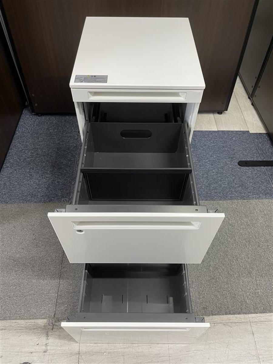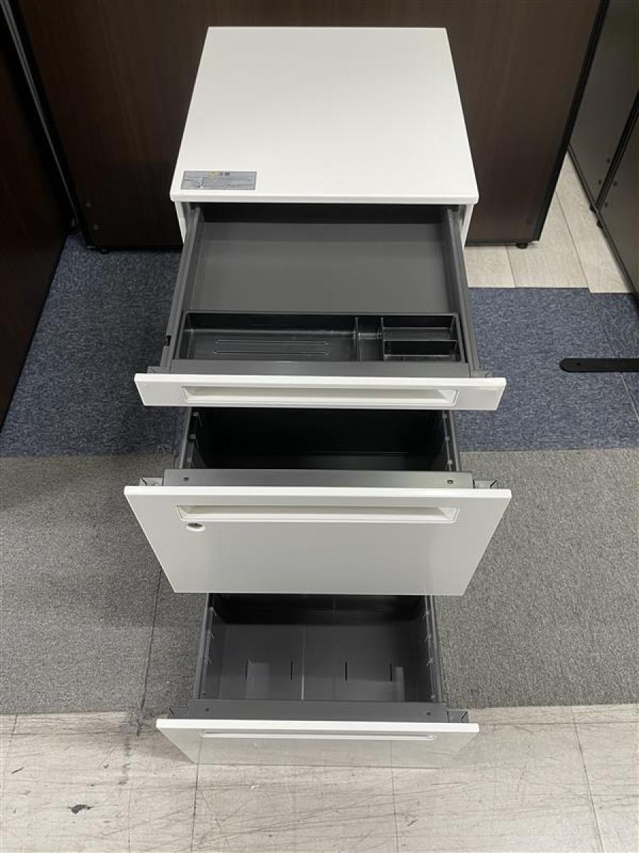 ★【取っ手日焼け】オカムラ製 アドバンス ホワイト フリアド用 W390xD575xH650サイズ シリンダー フリアドデスクや平机の収納力アップに最適! 3段ワゴン!!