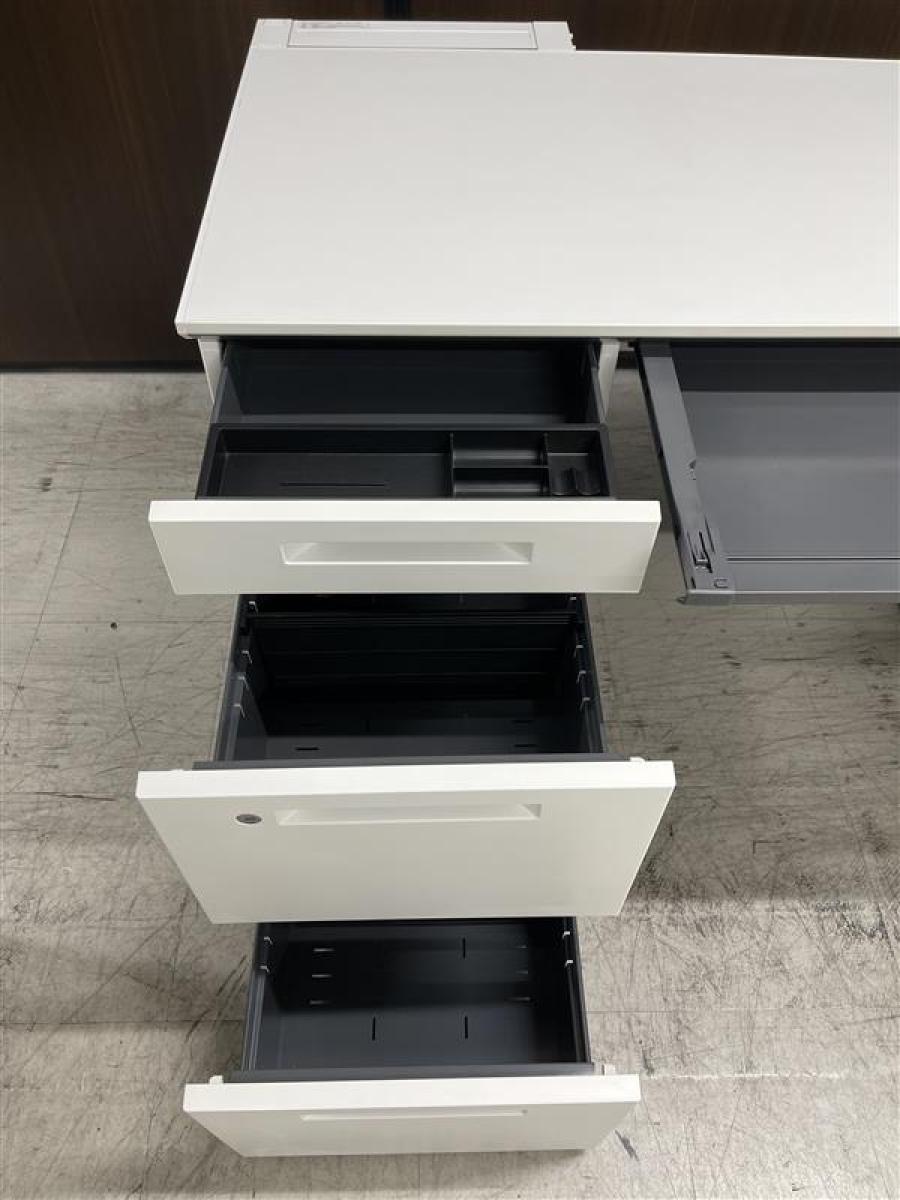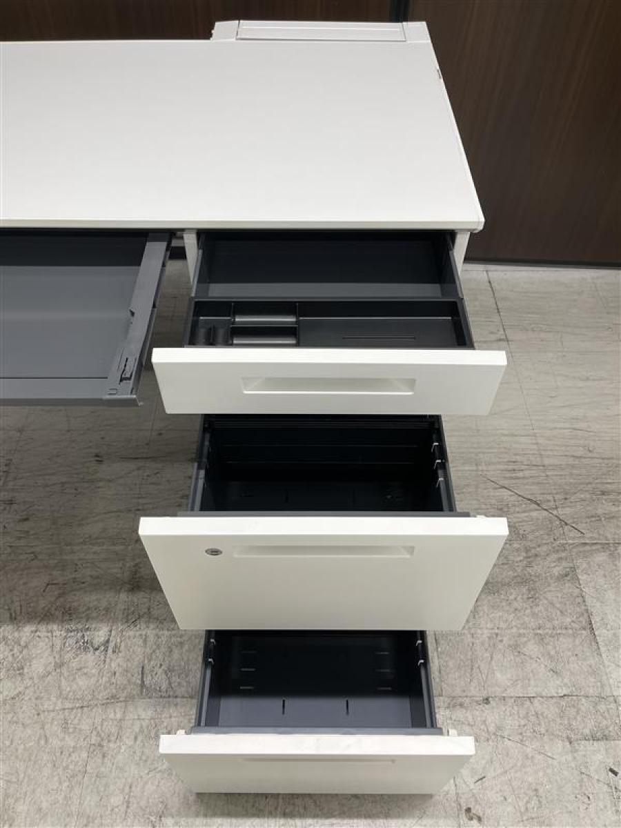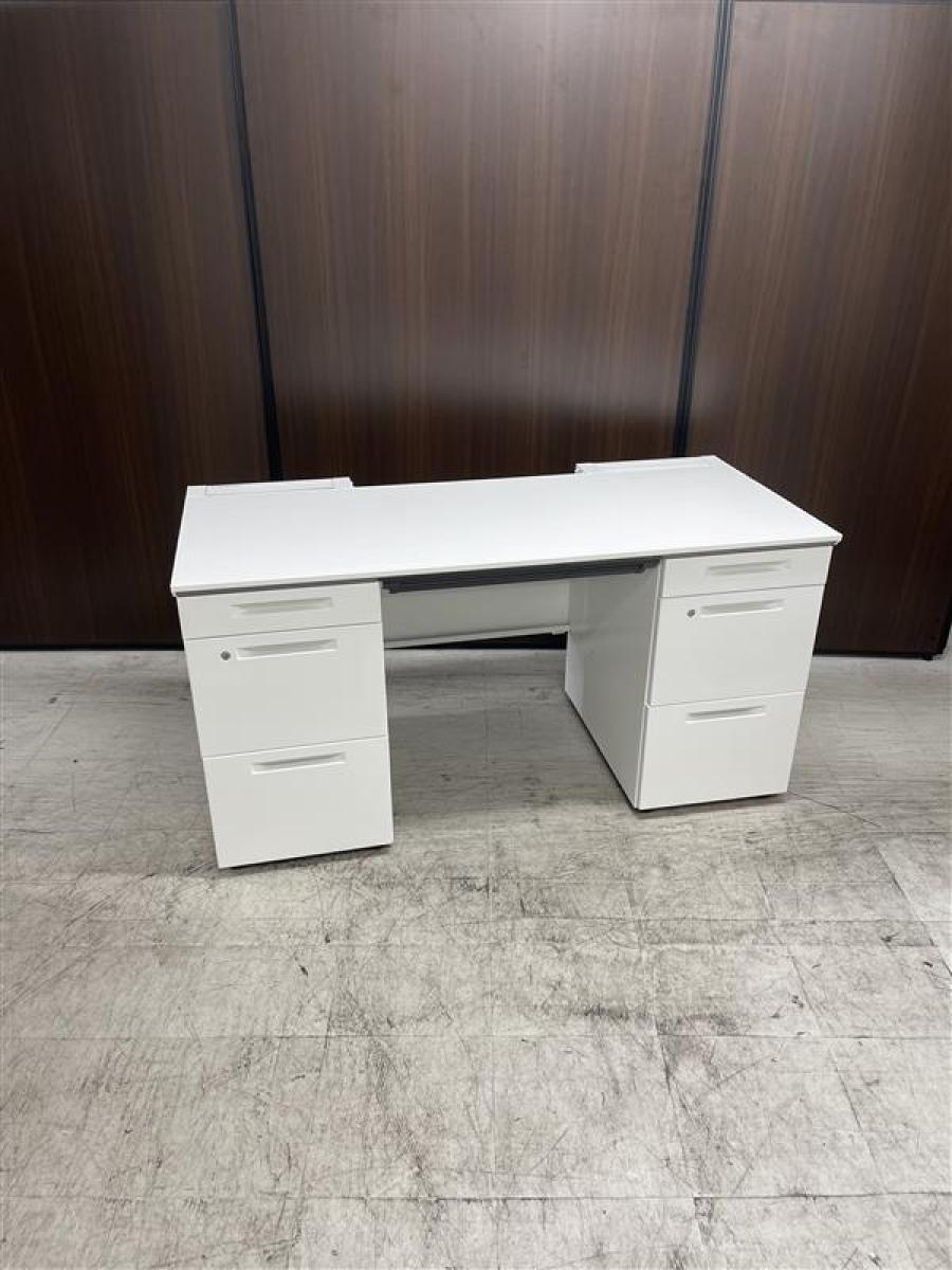 【在庫セール品・1台限定】【T11】■コクヨ(KOKUYO)製 アイエス(iS)シリーズ 両袖デスク W1400mm ■シリンダー錠 ■ホワイト【幅広いワークスペースで上長席にもオススメ! 収納スペース充実! 机上をスッキリ整理!】