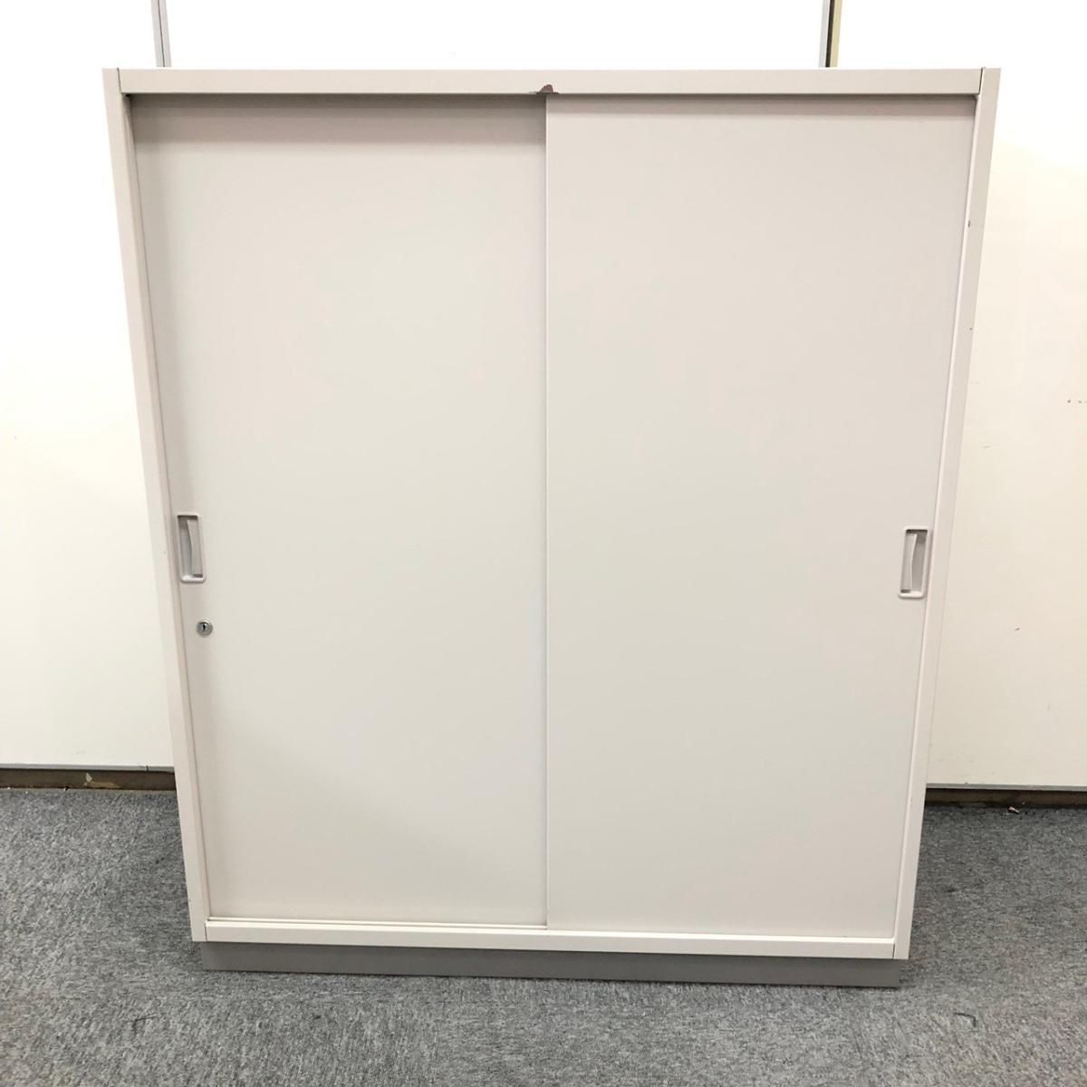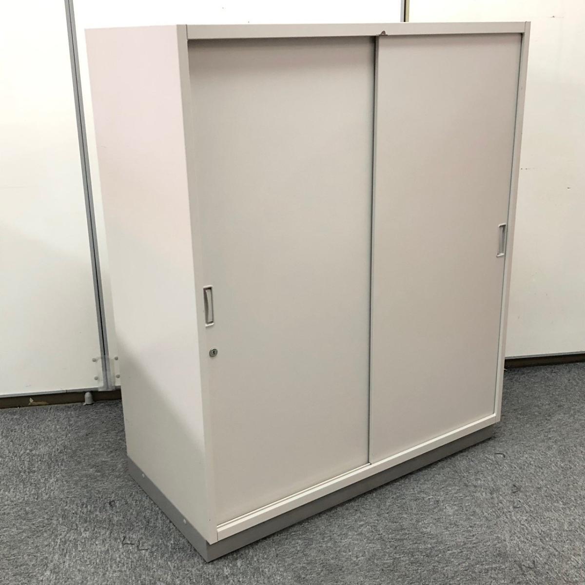 【定価約11万円】【スライド式なので開閉スペースに困りません!人気の3枚引き戸書庫!】■イトーキ (ITOKI)製 シンラインシリーズ 引き違い書庫 ローキャビネット 3枚引き戸 H1040㎜ ■グレー ■シリンダー錠 ※ベースなし