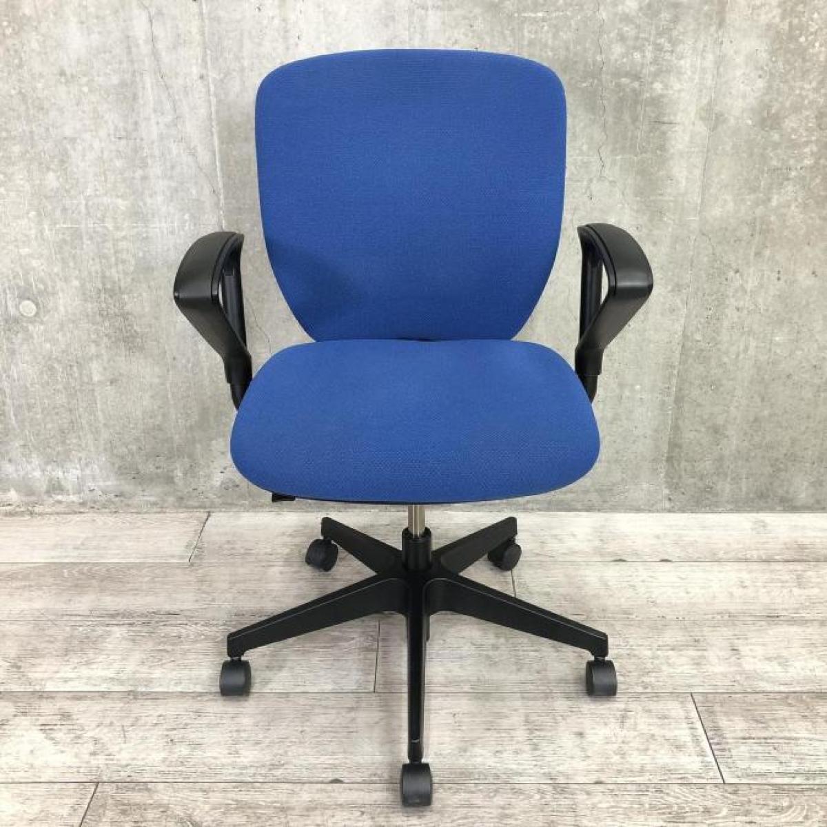 【一人ひとりにマッチする座り心地!姿勢の変化にフレキシブルに対応!】■イトーキ(ITOKI)製 プラオチェア 肘付 ローバック ■サークル肘 ■背面ストロングブルー×座面ブラック オフィスバスターズ 東大阪店【K11】