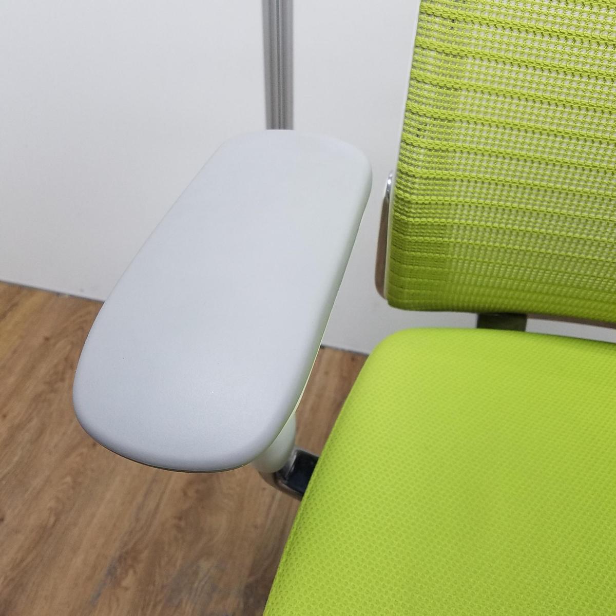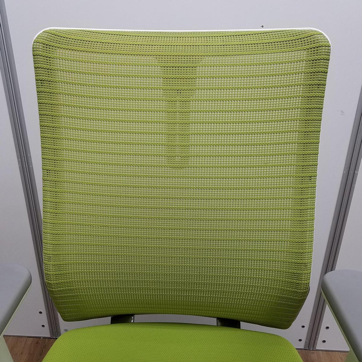 【T8】【商品入替のため、残り5脚限り】オカムラ製 コーラル ライムグリーン 背もたれメッシュ仕様 アジャストアーム※可動肘 ハンガー付 ポリッシュ脚 ホワイトフレーム 美しいデザインの快適メッシュ! 肘付きハイバックチェア!!【管理番号:A00996885】サーキュラーバリューCO2削減量の算出について