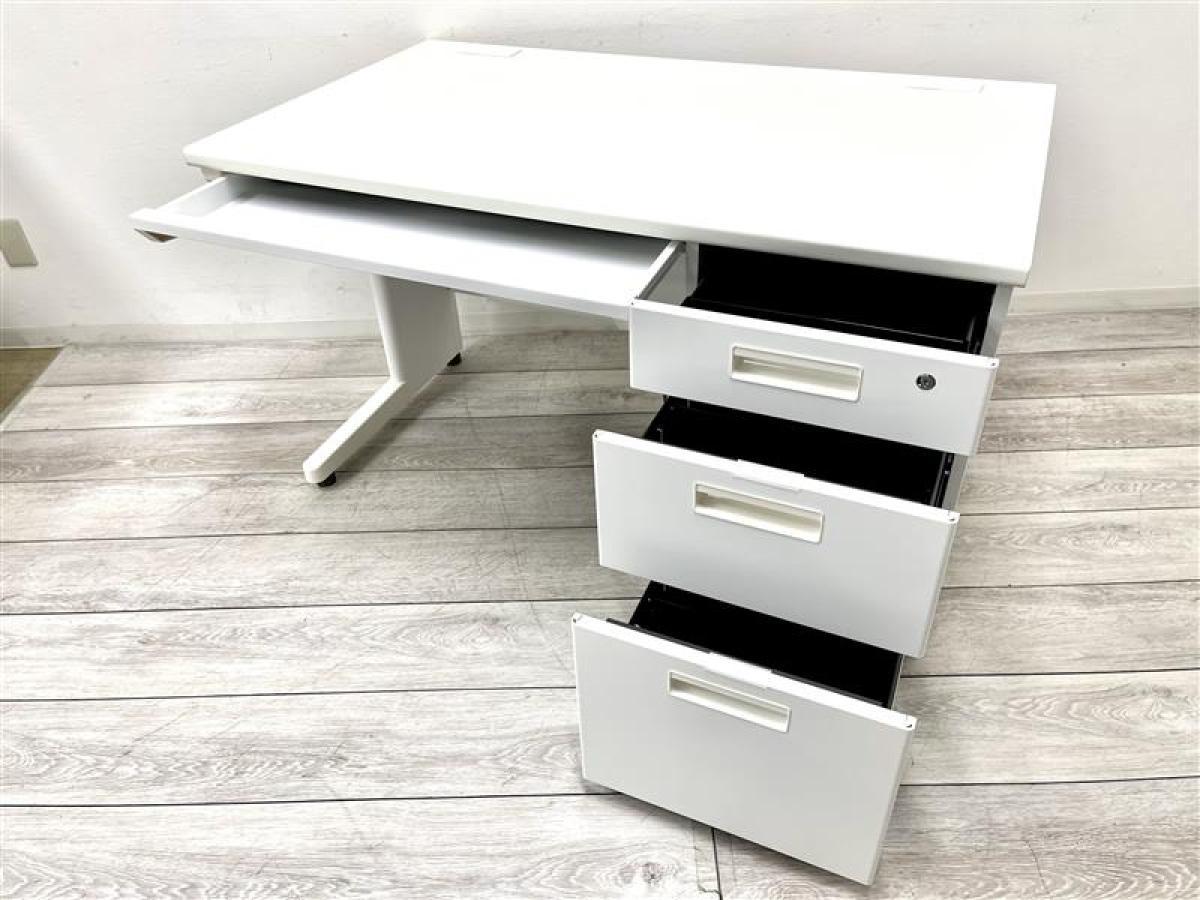 【定価約3万円】【オフィス定番の幅1200㎜サイズの片袖デスク入荷!】■ホワイト ■片袖デスク 引き出し3段 ■シリンダー錠- 仙台店