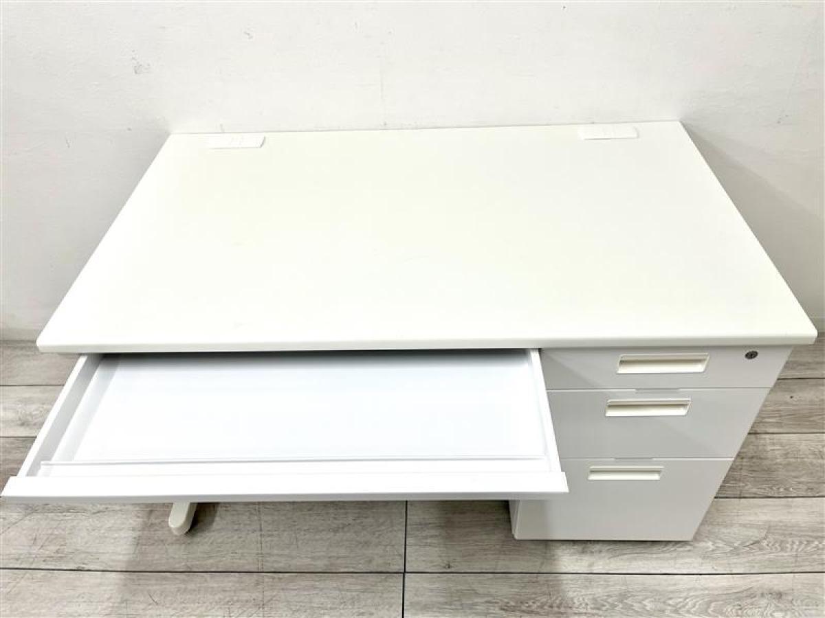 【定価約3万円】【オフィス定番の幅1200㎜サイズの片袖デスク入荷!】■ホワイト ■片袖デスク 引き出し3段 ■シリンダー錠新品