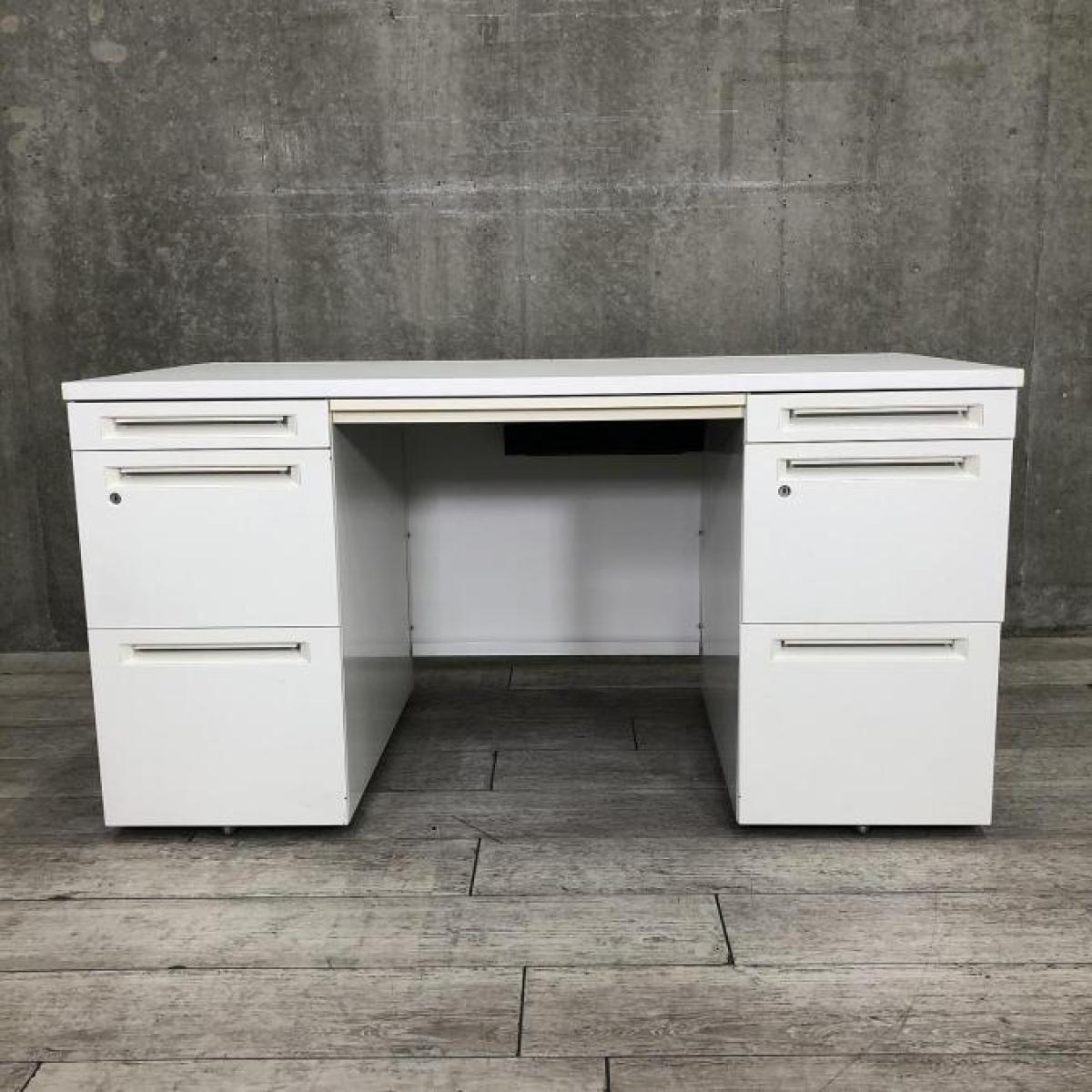定番/大人気/希少 オカムラ(okamura)製 アドバンス 両袖机 幅1400㎜ ■ホワイト ■シリンダー錠