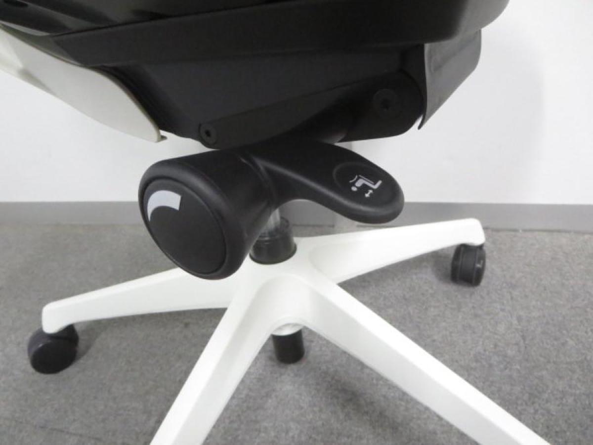 - 座面右下のダイヤル操作で、リクライニングの強弱調整が行えます。これまでのダイヤル式よりも、少ない回転数で、最弱?最強の調整が可能です。