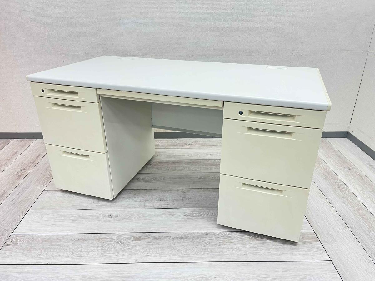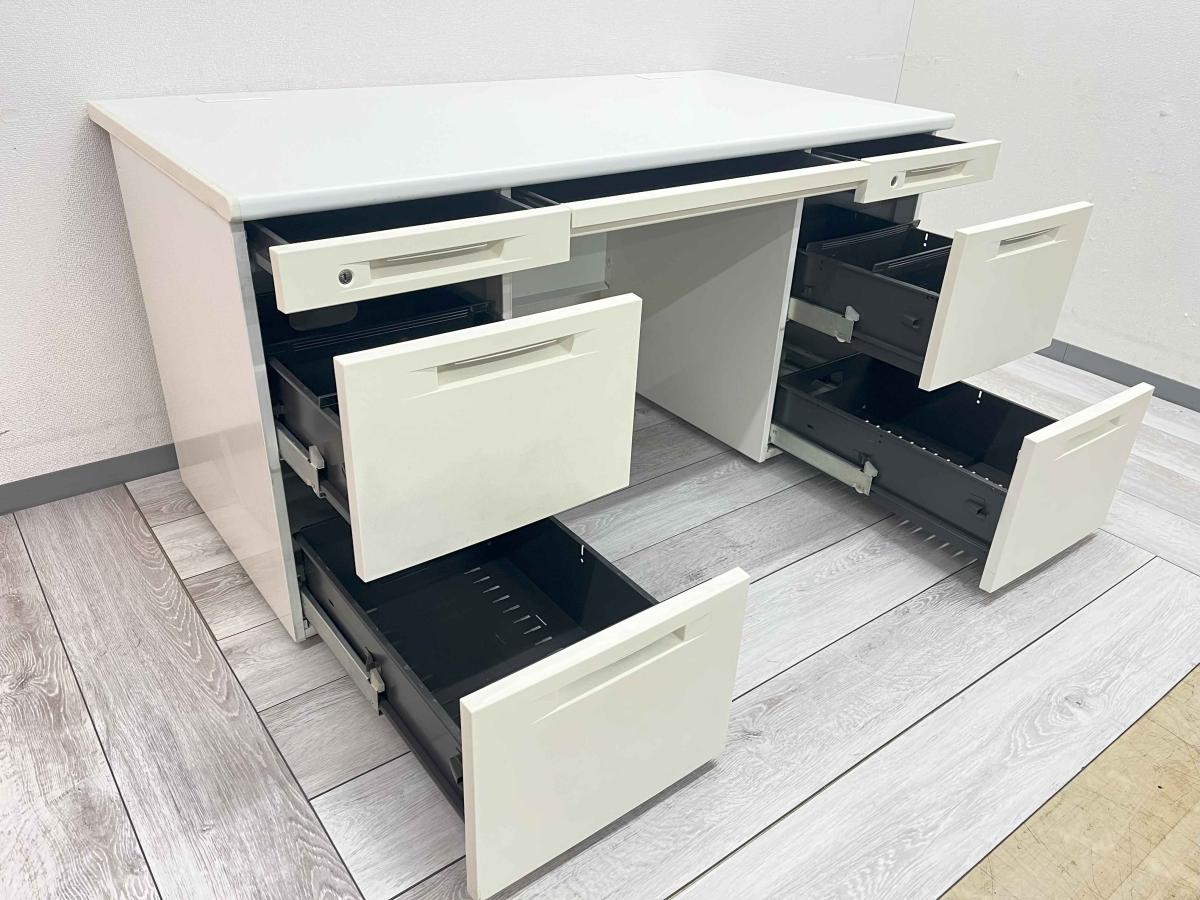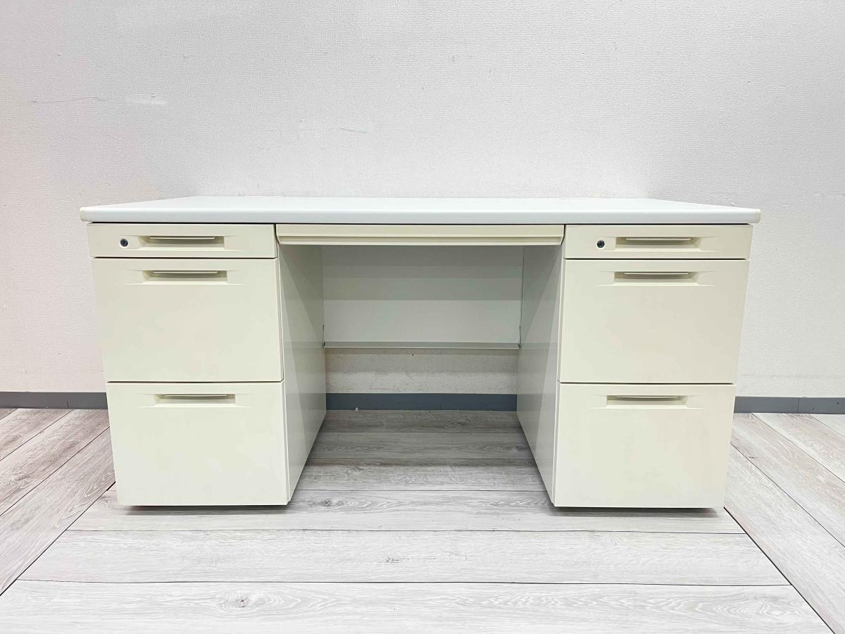 【広々としたワークスペース!上長席にも最適な幅1400mmの両袖デスク!!】■オカムラ(okamura) ヴィラージュ(VILLAGE)シリーズ 両袖机 引き出し付き ■1400×D700×H700㎜ ■ホワイト ※日焼け有り〈岐阜・愛知・三重・静岡・福井〉- 岐阜店