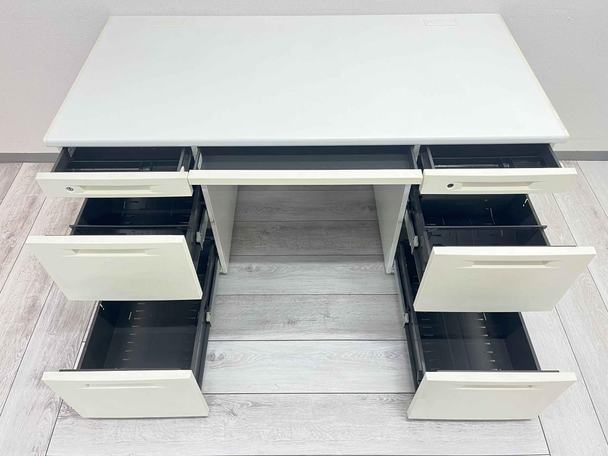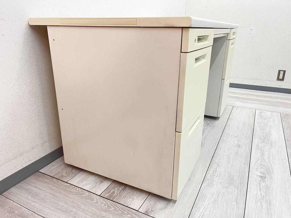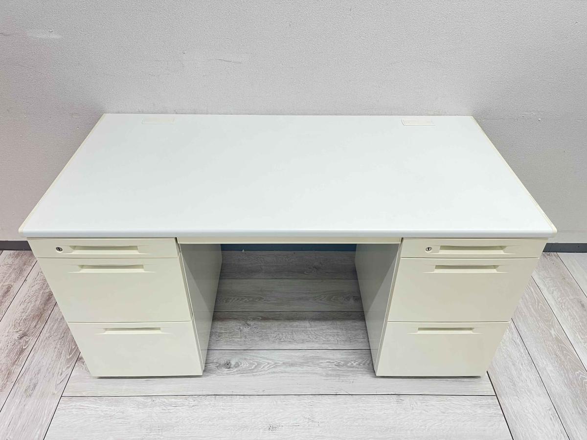 【広々としたワークスペース!上長席にも最適な幅1400mmの両袖デスク!!】■オカムラ(okamura) ヴィラージュ(VILLAGE)シリーズ 両袖机 引き出し付き ■1400×D700×H700㎜ ■ホワイト ※日焼け有り〈岐阜・愛知・三重・静岡・福井〉- 岐阜店