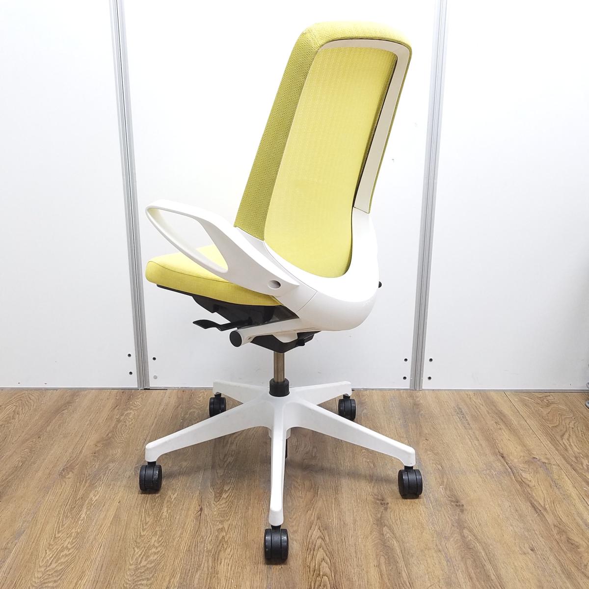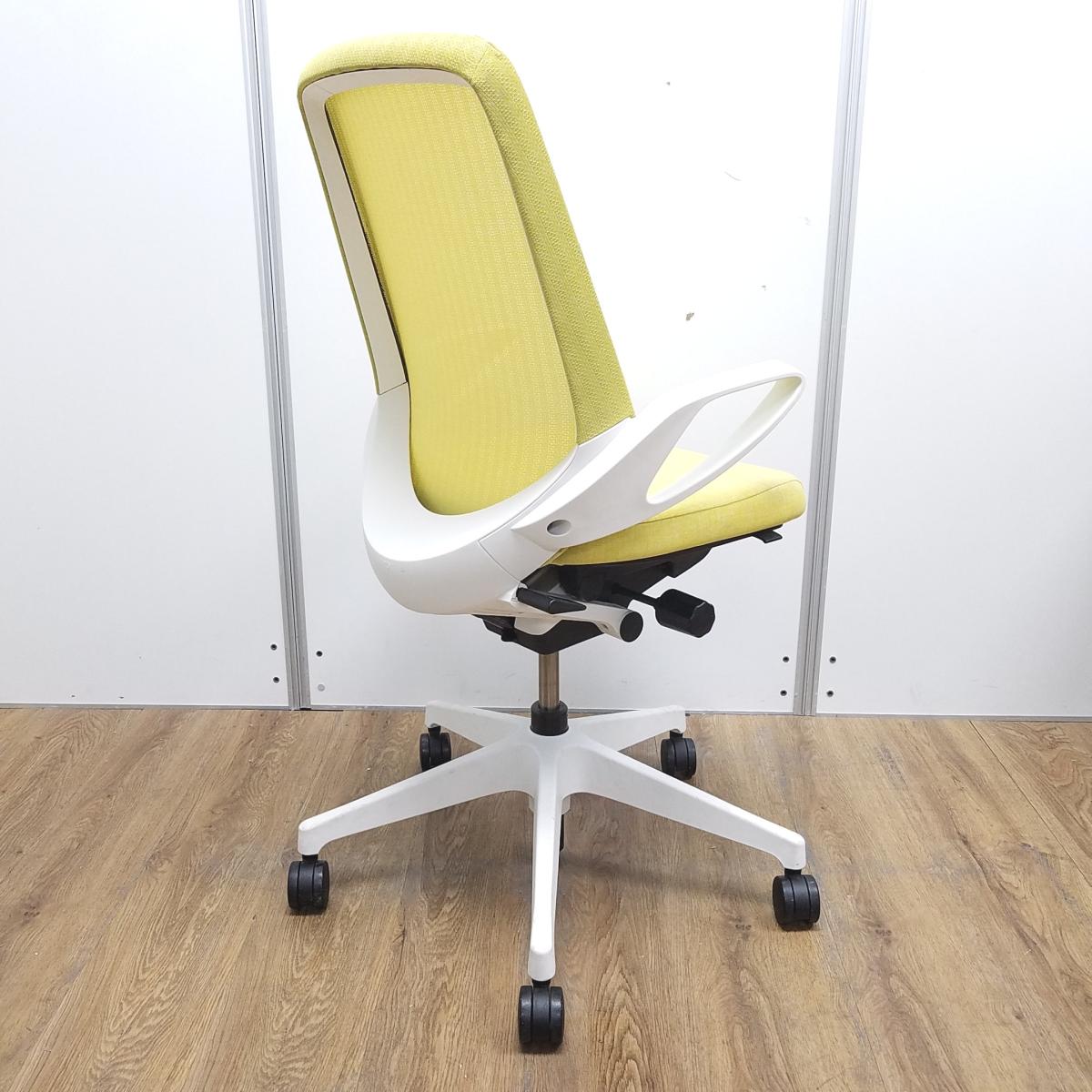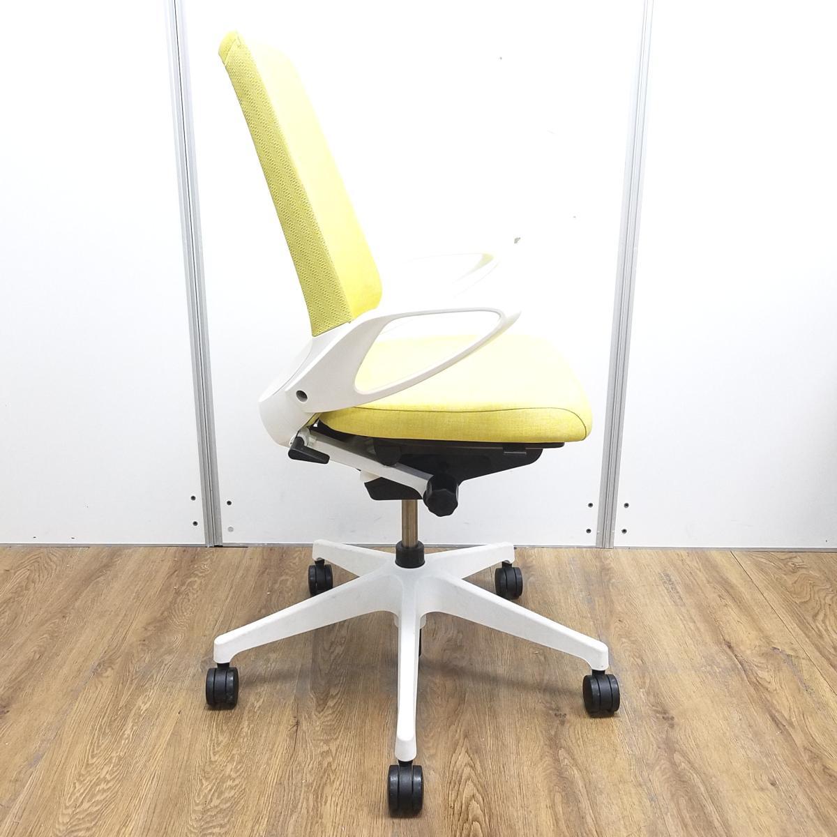 【22年度製】イトーキ製 ノート カナリアイエロー ホワイトフレーム ループ肘※固定肘 ハイバック テクスチャードメッシュ もっと美しく快適に! 柔らかな座り心地が人気の新世代ワークチェア! 肘付きハイバックチェア!!- 京都東寺店