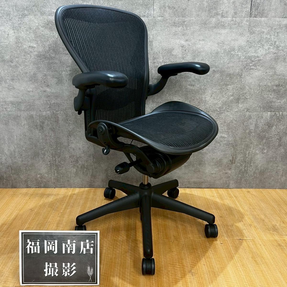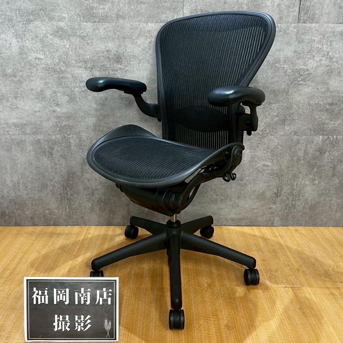 【ワーキングチェアの名作!】■ハーマンミラー アーロンチェア 固定肘 Bサイズ スタンダード ランバーサポート付 ※キズあり商品のためお安く! 【Herman Miller Aeron Chair】A01029474