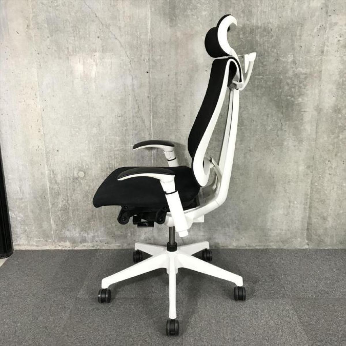 【A00995007】【座るとわかる快適さ!骨盤にしっかりフィット!チェア自らが動き座る人の体を支える! 】■イトーキ製(ITOKI) セレーオチェア (celeeo) 肘付きハイバック ■可動肘 メッシュ背面 ヘッドレスト付き ■ブラック × ホワイトフレーム【IB】- 茨城南店