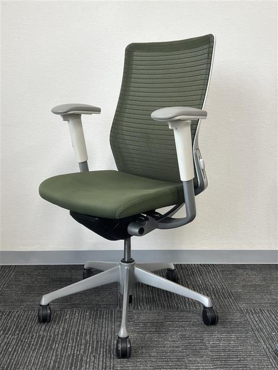 ■Okamura/オカムラ ■コーラルチェア(Choral) ■ダークグリーン×ホワイトシェル ■肘付き/可動肘 ■ハイバック ■背面/メッシュ ■ランバーサポート付 【弊社使用欄:A01043897】