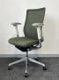 【ヘッドレスト付きならコレ!厚めのクッションで快適な座り心地を実現!】■オカムラ(okamura)製 コーラル(choral)チェア ■エクストラハイバック ■ヘッドレスト付き ■背メッシュ ■グリーン ■デザインアーム〈岐阜・愛知・三重・静岡・福井〉