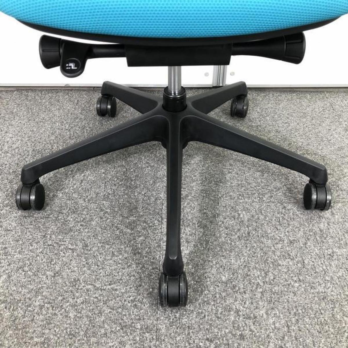 【在庫入れ替え】【三次元曲面が快適にフィット!!前傾チルト機能付の大人気メッシュチェア!】■オカムラ(okamura)製 シルフィー(Sylphy)チェア 肘付きローバック ■メッシュバック ■固定肘 ■ハンガー付き ■ブルーグリーン × ブラックシェル- 名古屋本店
