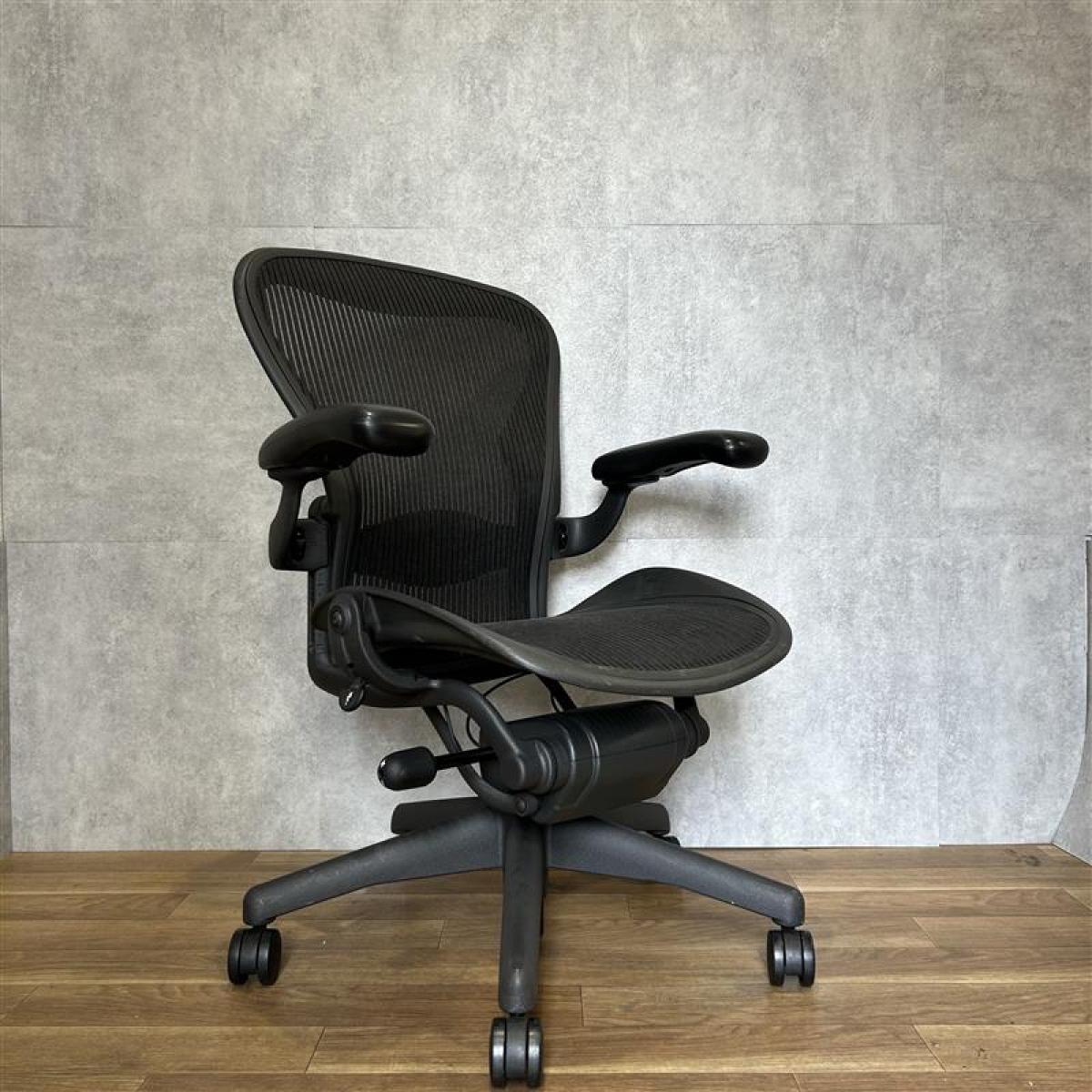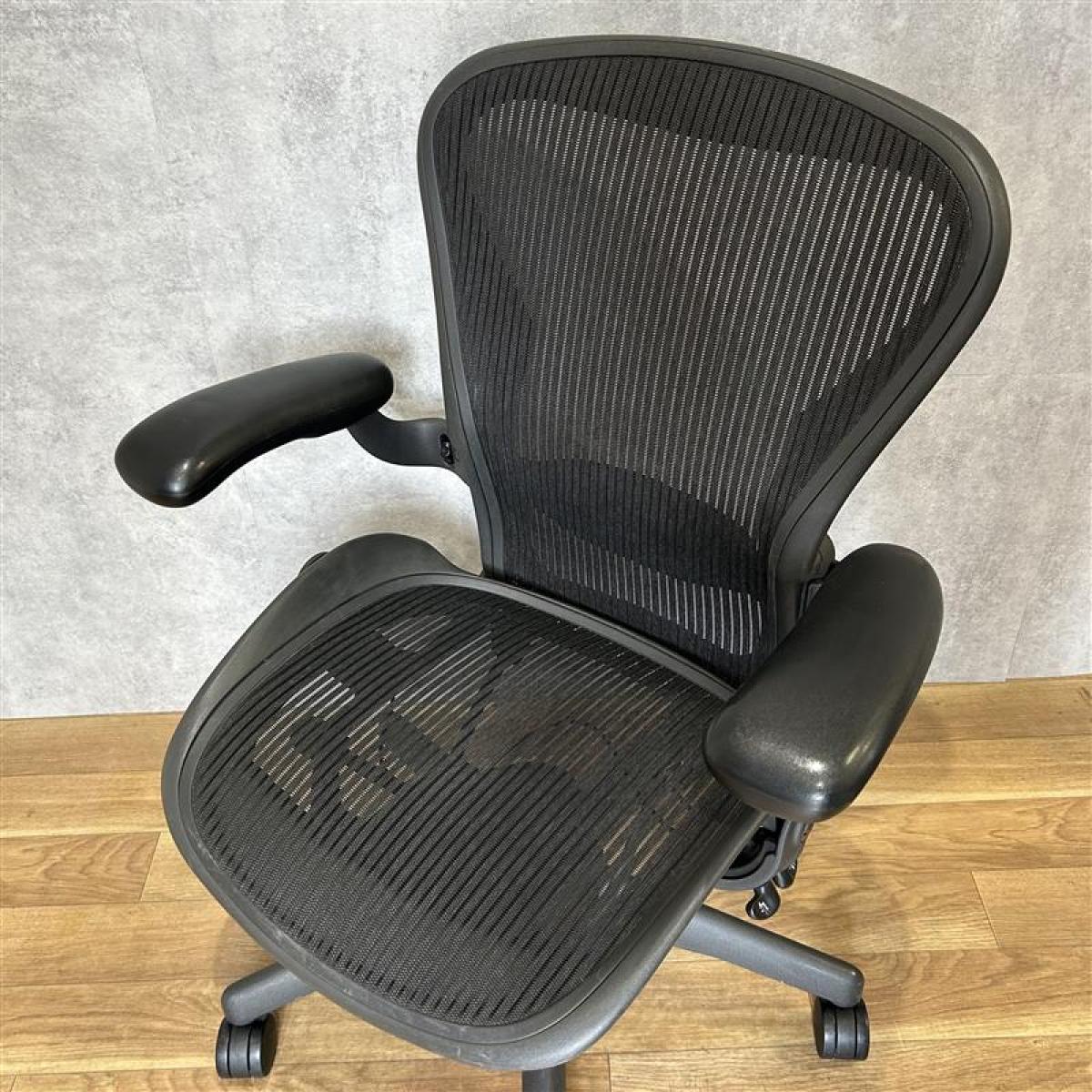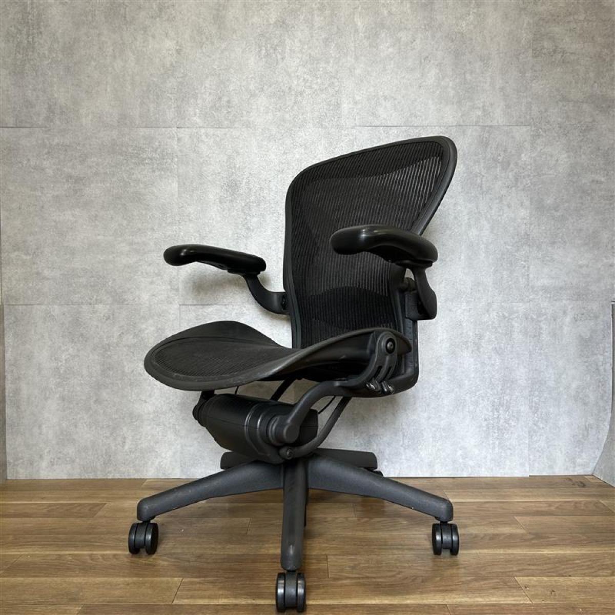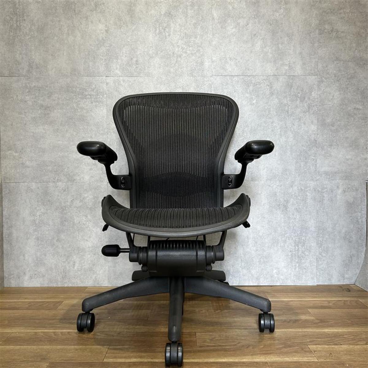 【スタイリッシュなデザインに快適な座り心地!】■ハーマンミラー アーロンチェア Bサイズ 固定肘 ランバーサポート無 ※キズあり・劣化ありのためお安く!【A01029474】
