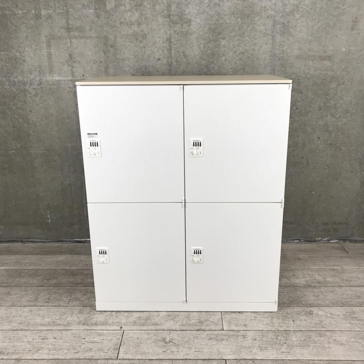 【商品入替のため、残り4台限り】オカムラ製 レクトライン ホワイト 4人用 投函口有り ダイヤル錠 ナチュラル木目調天板 フリーアドレスオフィスの必需品! ダイヤル錠式で鍵の持ち運び要らず! 4人用パーソナルロッカー!!※非常解除キーはついていません