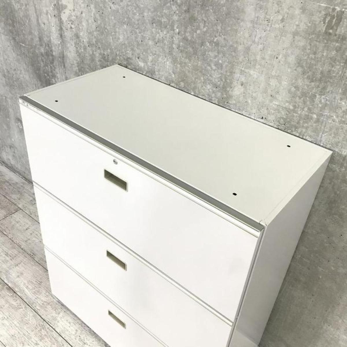 【4台限定在庫入替セール品】イトーキ製の定番書庫!人気の引き出し(ラテラル)タイプになります! イトーキ シンライン ホワイトグレー 3段ラテラル 天板付き