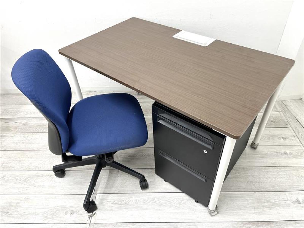 【セット商品】【人員増加の際に便利!デスク,ワゴン,チェアのセット!】■イトーキ(ITOKI)製 アクティブフィールド(Active Field) ワークテーブル パーソナルテーブル W1200×D700㎜ ■キャスター付き ■天板:木目ブラウン/脚:ホワイト ■プラス/ジェネラシリーズ ■ブラック ■シリンダー錠 ■オカムラ(okamura)製 スラートチェア(sulato) ローバック 肘無し ■ミディアムブルー ※セット商品のため配送料要相談- 仙台店