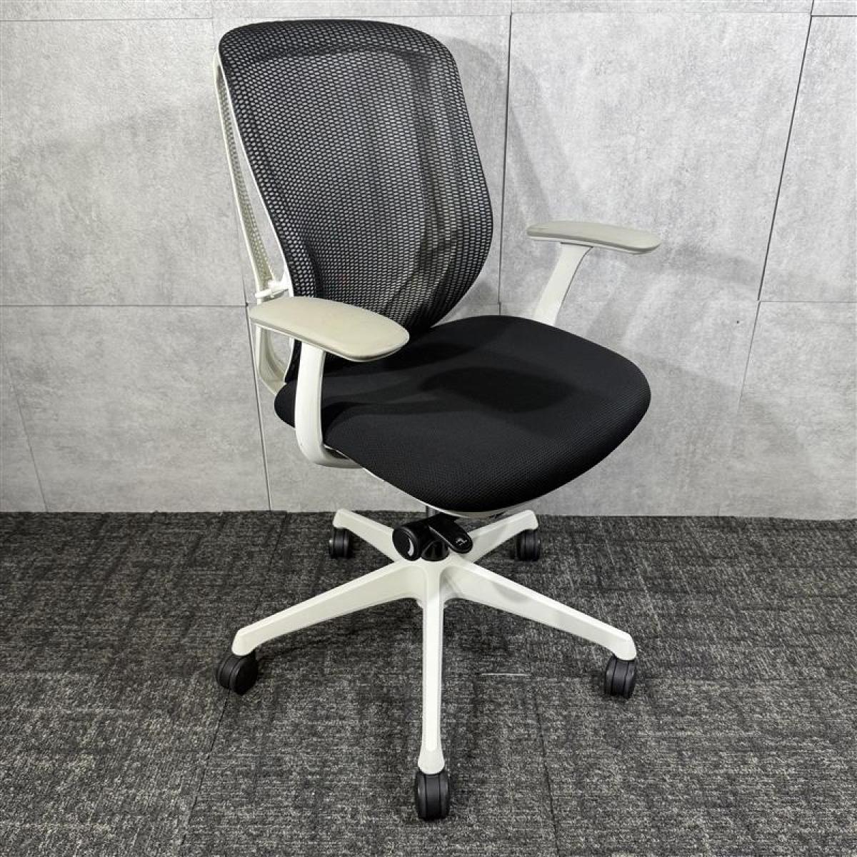前傾チルト機能付き!オカムラ製品で最も人気を集める高機能メッシュチェア! ■オカムラ/シルフィー(Sylphy)/ブラック×ホワイトフレーム 可動肘付き ローバック 背面メッシュ