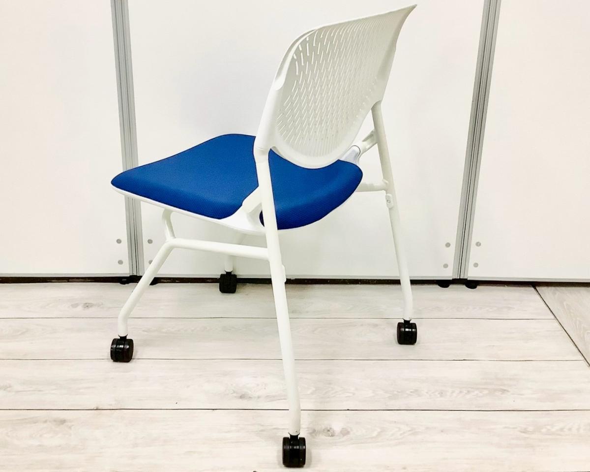 【使わない時は重ねて収納!さまざまな場面で活躍するミーティングチェア!】■オカムラ(okamura) ルナ(RUNA)チェア ネスティングチェア ミーティングチェア ■背面ヌードタイプ ■座面:ブルー × 背面:ホワイト