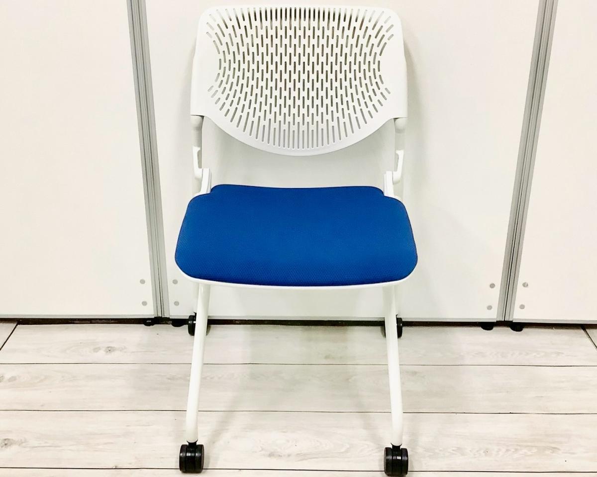【使わない時は重ねて収納!さまざまな場面で活躍するミーティングチェア!】■オカムラ(okamura) ルナ(RUNA)チェア ネスティングチェア ミーティングチェア ■背面ヌードタイプ ■座面:ブルー × 背面:ホワイト オフィスバスターズ心斎橋店 ■弊社使用欄【A01023670】【T12】
