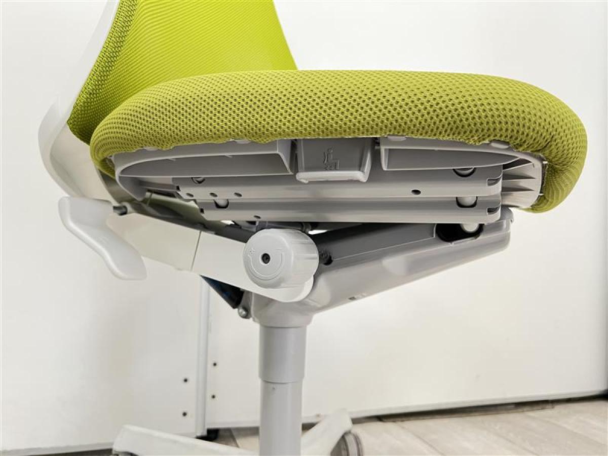 【腰まわりをしっかりホールド!長時間作業も快適フィット!】■オカムラ(okamura)製 フルーエントチェア ハイバック肘無し ■背面メッシュ ■グリーン×ブラックフレーム【T9】