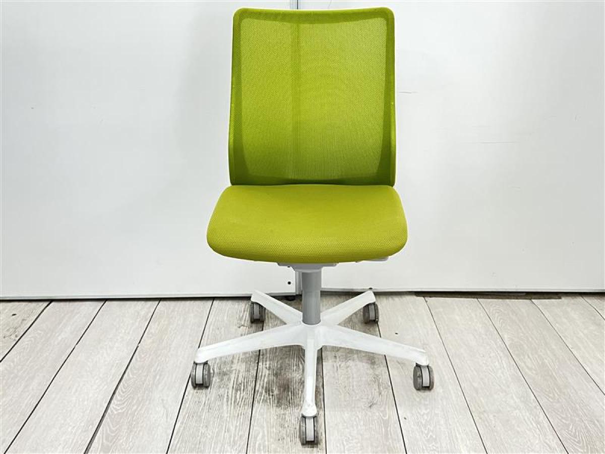 【腰まわりをしっかりホールド!長時間作業も快適フィット!】■オカムラ(okamura)製 フルーエントチェア ハイバック肘無し ■背面メッシュ ■グリーン×ブラックフレーム【IB】