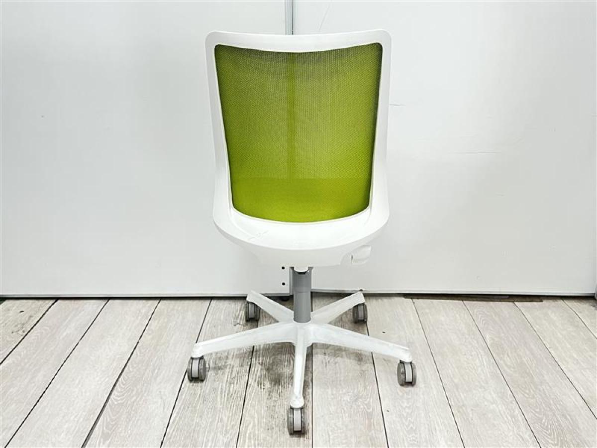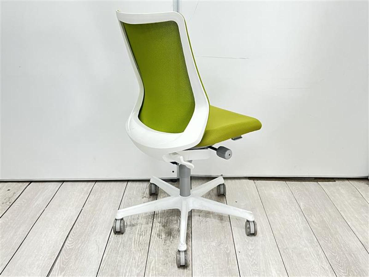 【腰まわりをしっかりホールド!長時間作業も快適フィット!】■ハイバック肘無し 背面メッシュ グリーン×ブラックフレーム/オカムラ/フルーエント- 池袋店