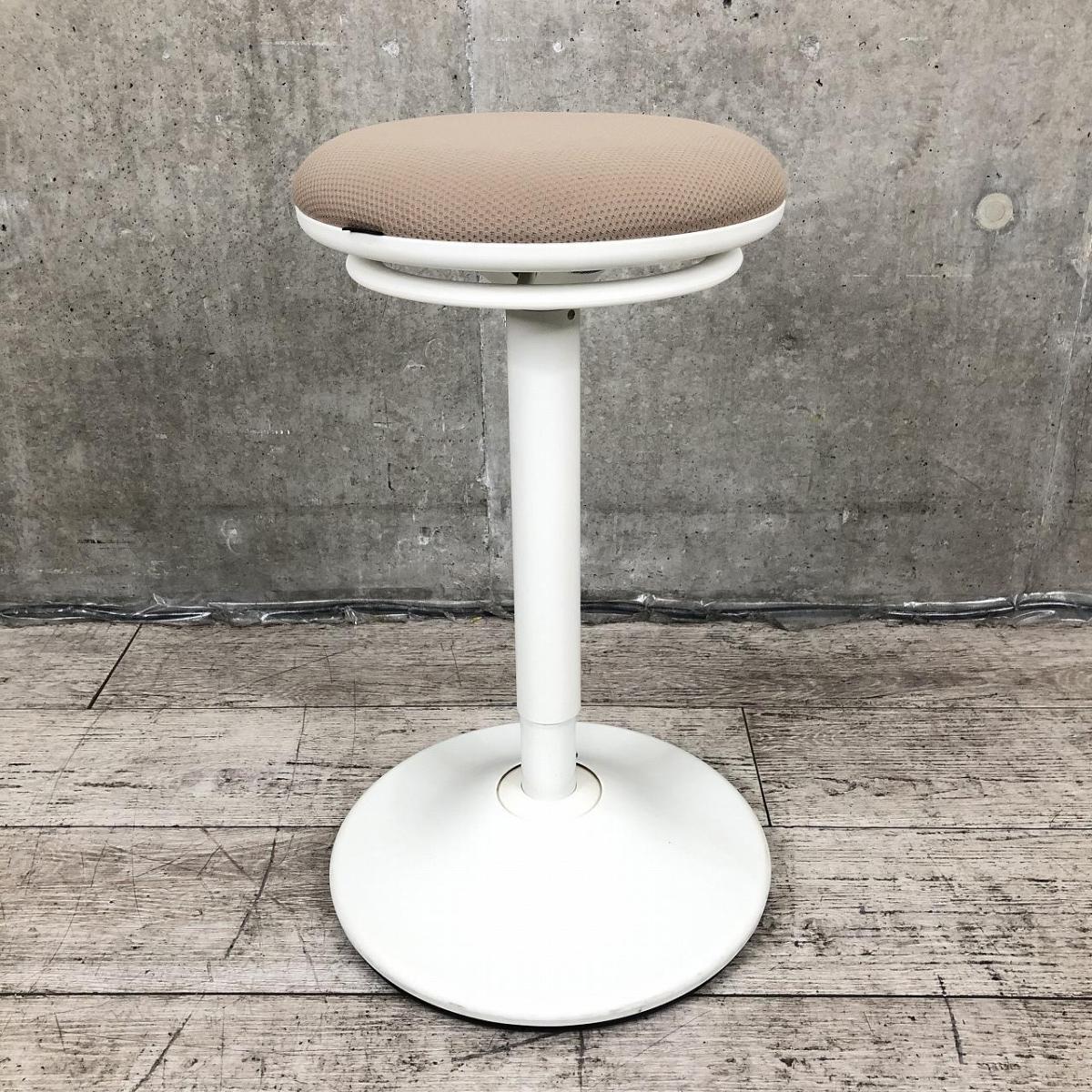 【「座る」と「立つ」のいいとこ取り!】■オカムラ(okamura)製 ピルエット(pirouetto)シリーズ カウンターチェア スツール ■座面:ベージュ 支柱:ホワイト【高さ調節可能なパーチングスツール!】- 在庫数